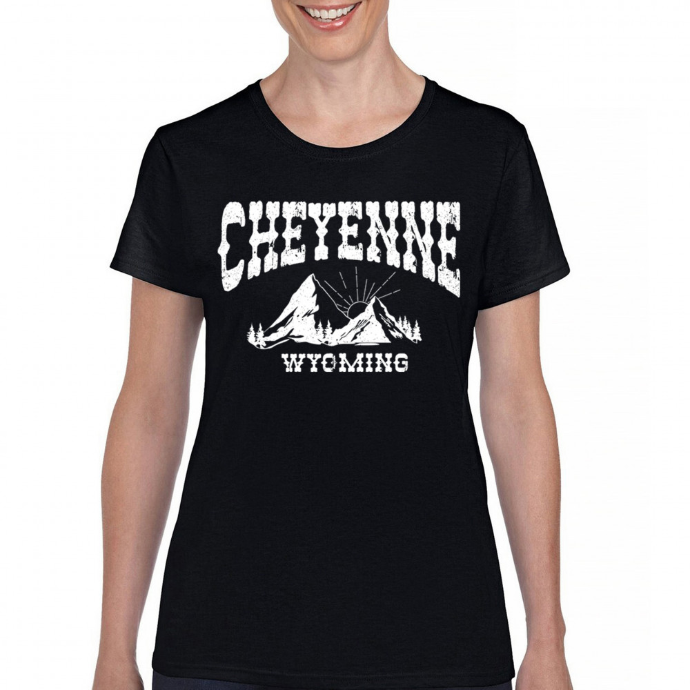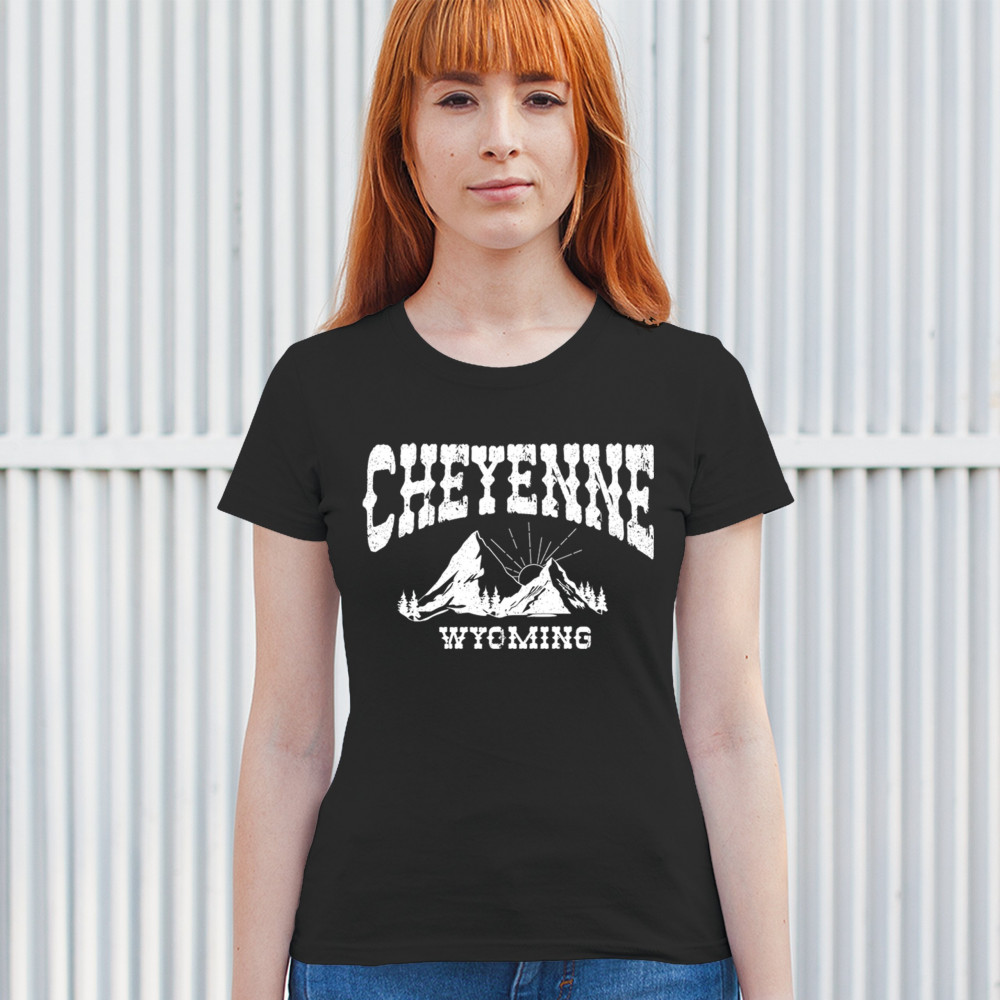 Vintage Cheyenne Wyoming design with mountain sunrise for outdoor lovers and locals. Perfect for travel, hiking, or Western pride.