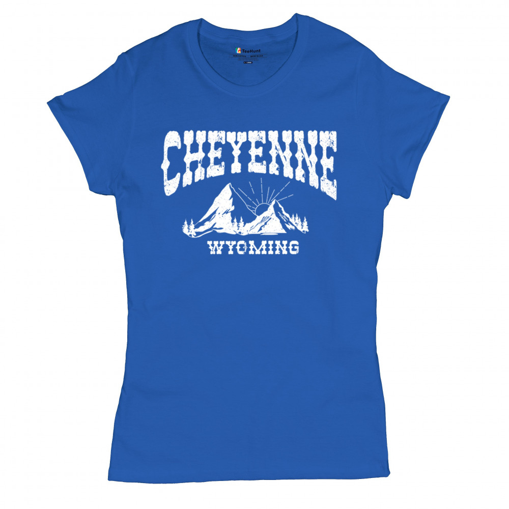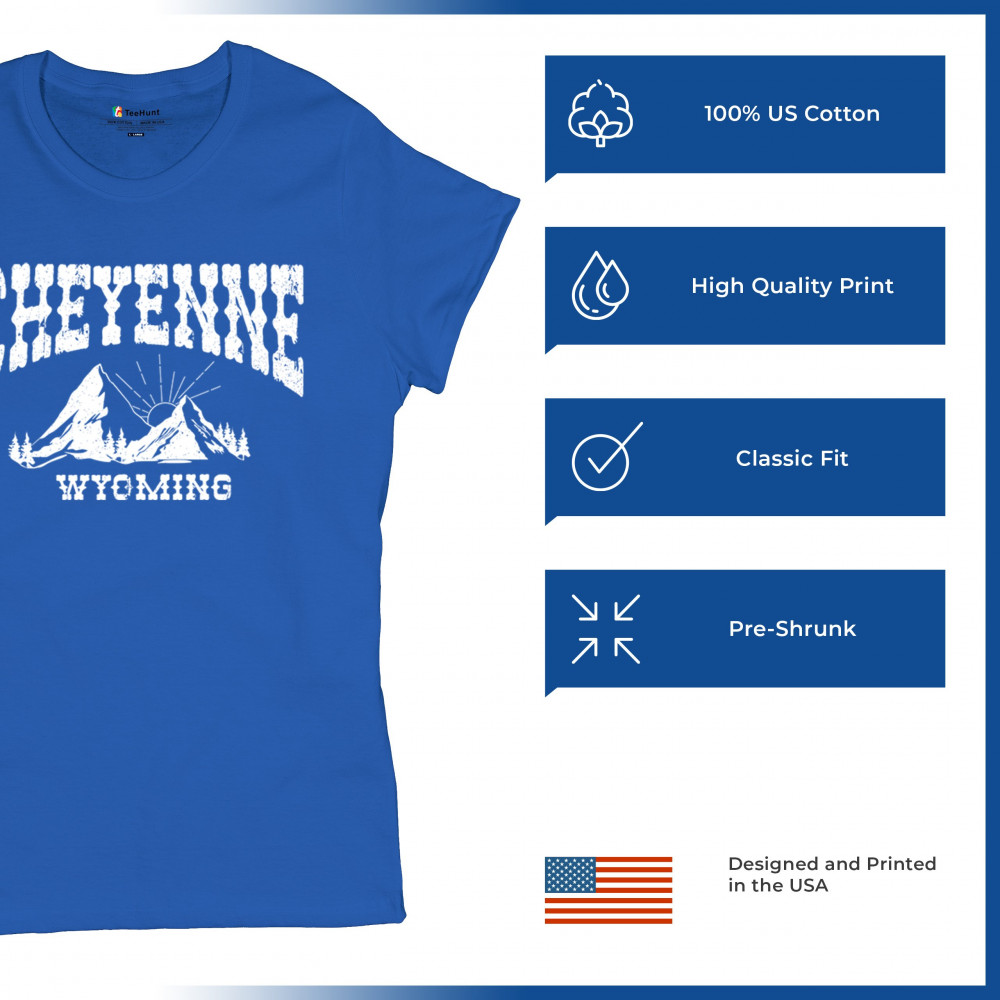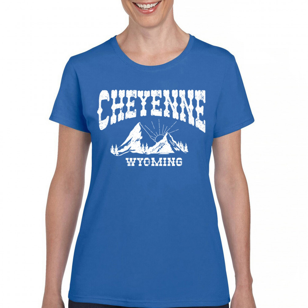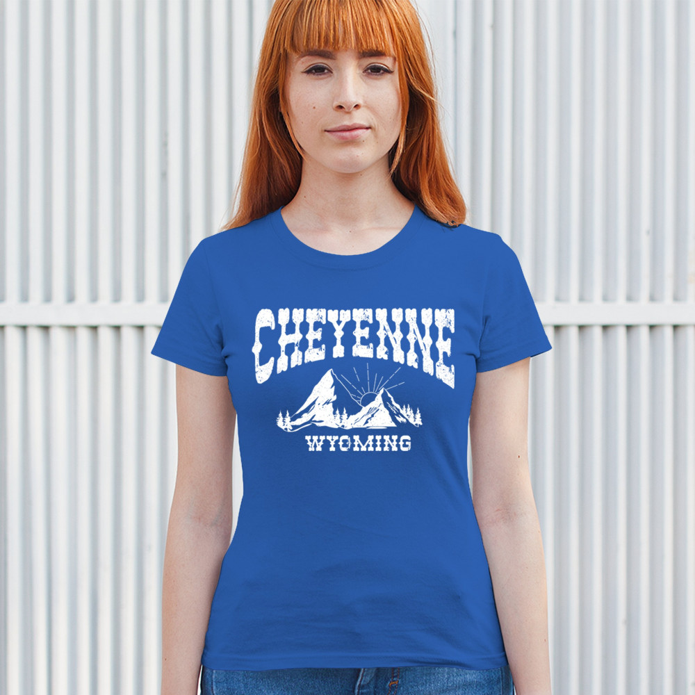 Vintage Cheyenne Wyoming design with mountain sunrise for outdoor lovers and locals. Perfect for travel, hiking, or Western pride.