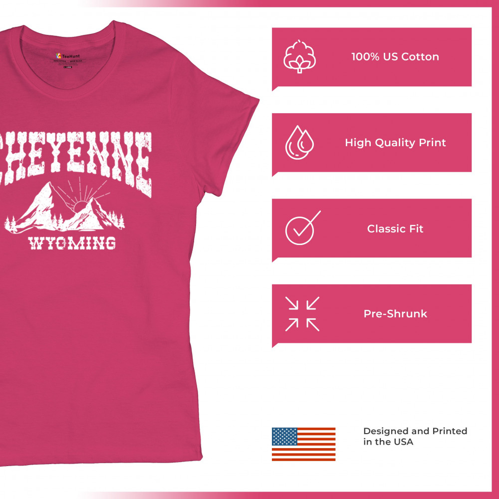 Vintage Cheyenne Wyoming design with mountain sunrise for outdoor lovers and locals. Perfect for travel, hiking, or Western pride.