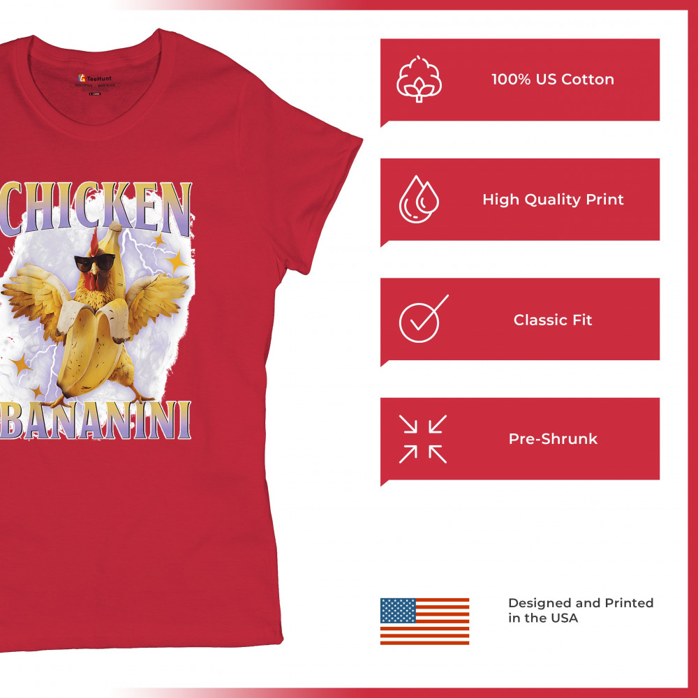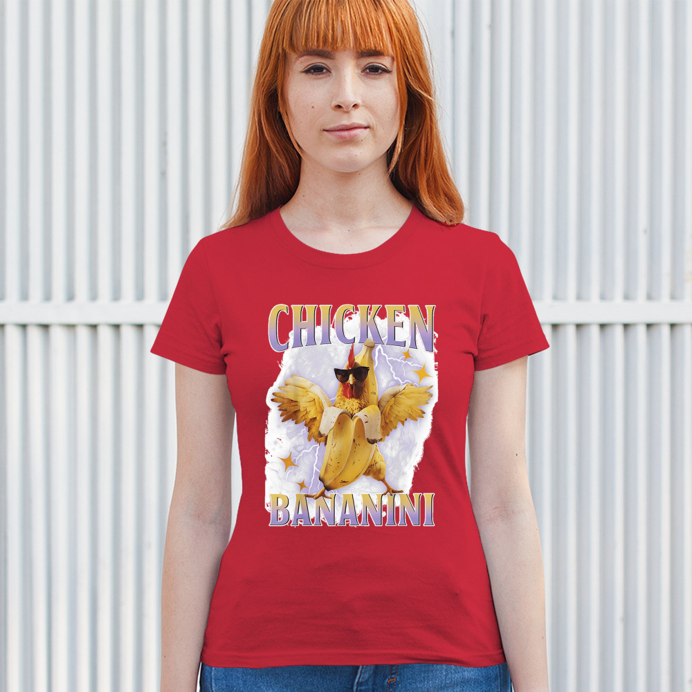 Chicken Bananini is meme absurdity with extra peel. Featuring a chicken emerging from a banana and rocking shades, this design blends cursed-core fashion, viral animal humor, Gen Z brainrot, and TikTok-style chaos. A must-have for fans of ironic mashups, surreal creatures, and internet-fueled nonsense.