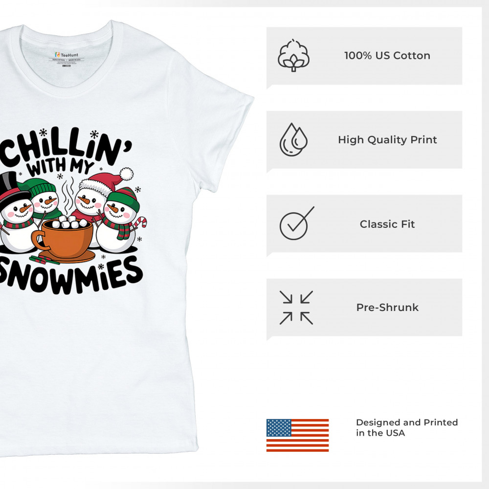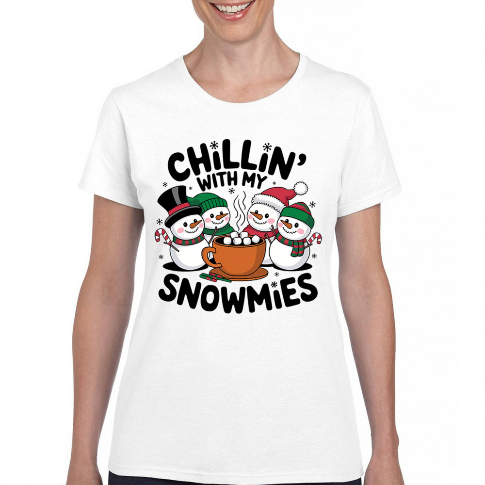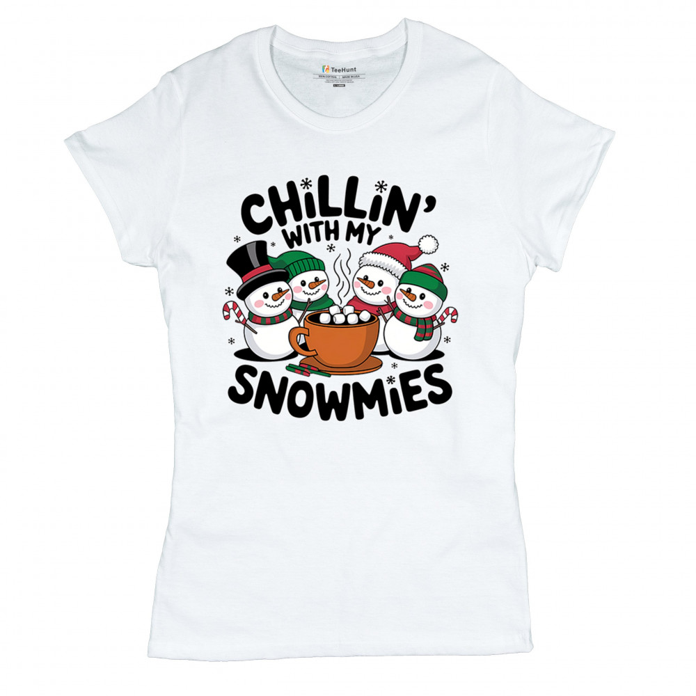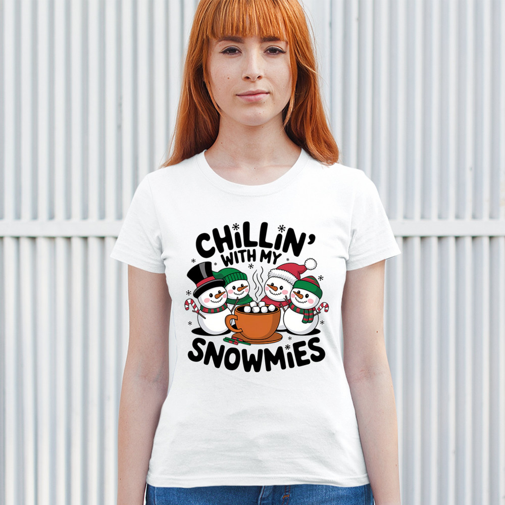 A cute and cheerful winter design showing happy snowmen sharing hot cocoa, perfect for Christmas gatherings, holiday events, seasonal photos, white-elephant gifting, festive family nights, winter celebrations, cozy weekend vibes, and fans of playful holiday humor. A fun graphic for anyone who loves bright and friendly Christmas styles.