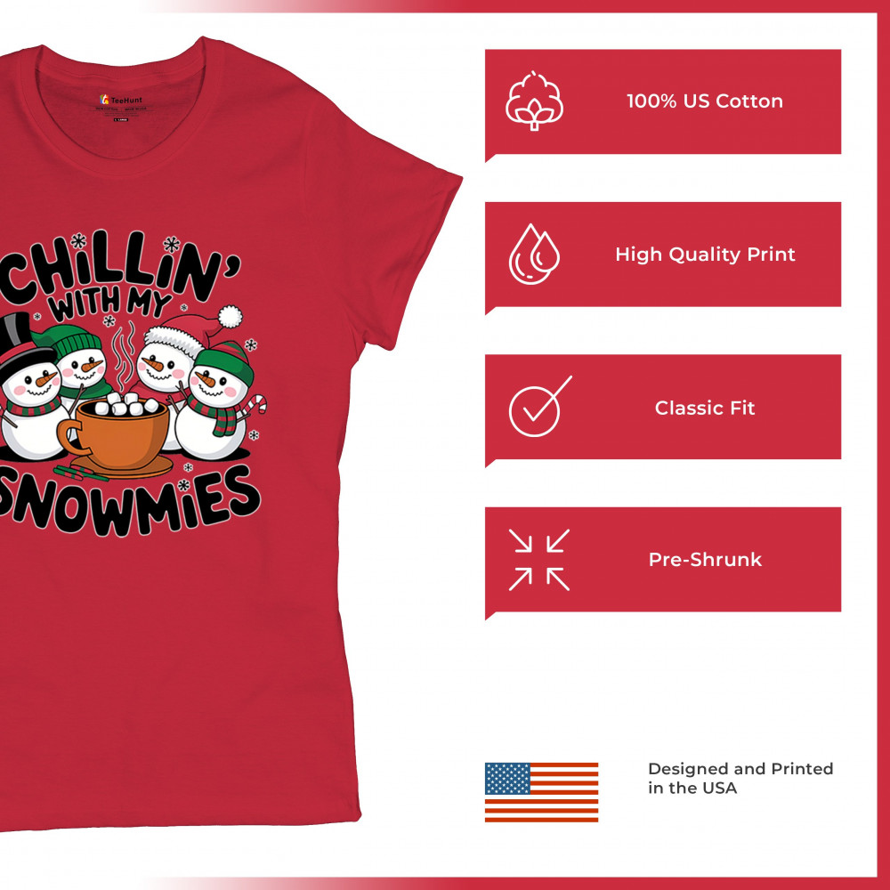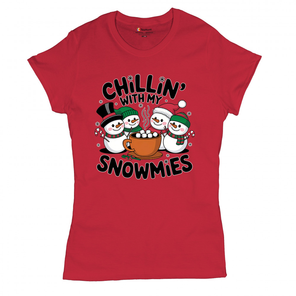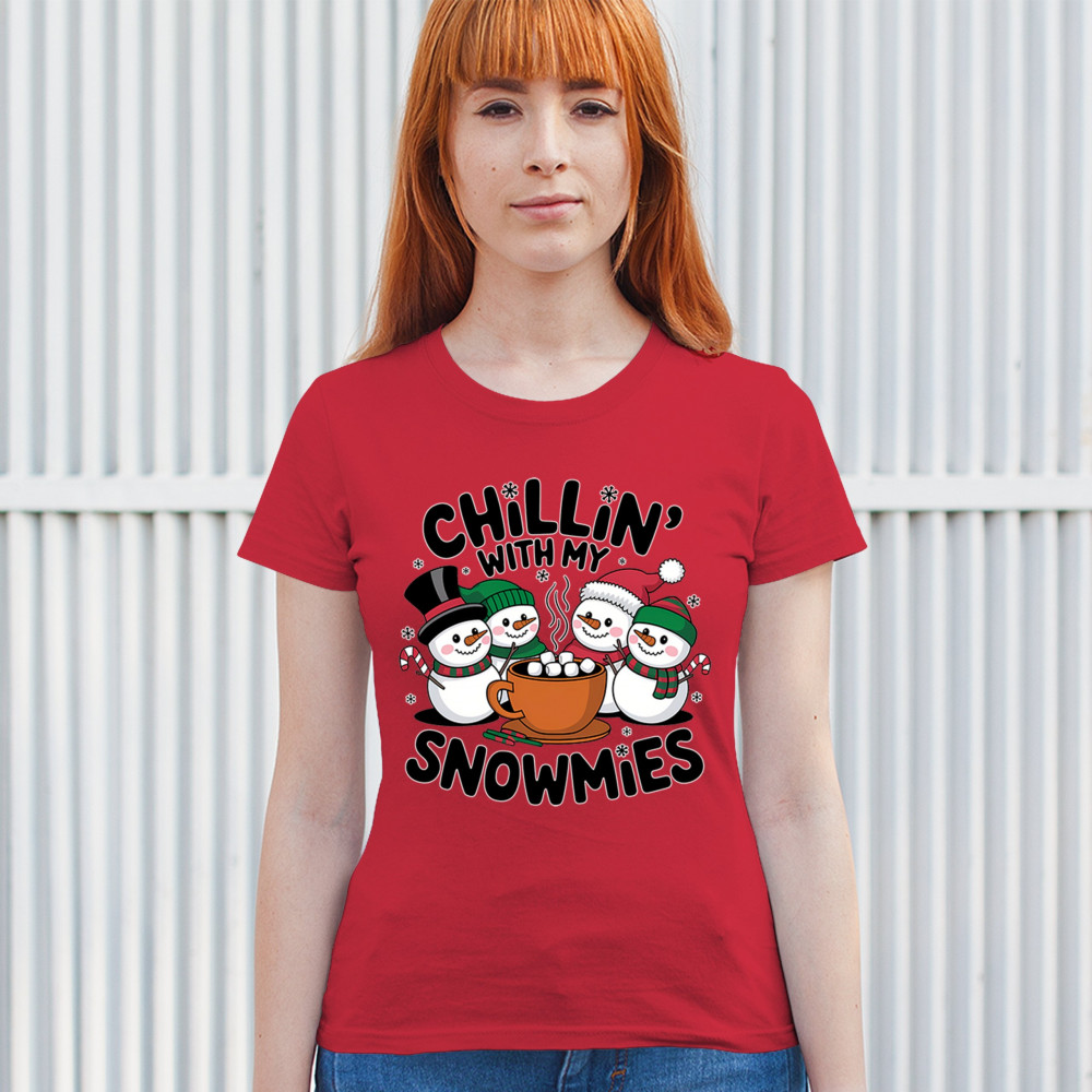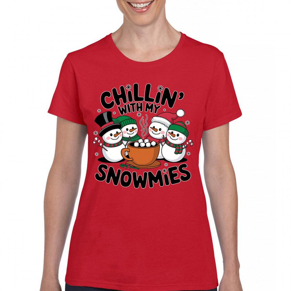 A cute and cheerful winter design showing happy snowmen sharing hot cocoa, perfect for Christmas gatherings, holiday events, seasonal photos, white-elephant gifting, festive family nights, winter celebrations, cozy weekend vibes, and fans of playful holiday humor. A fun graphic for anyone who loves bright and friendly Christmas styles.