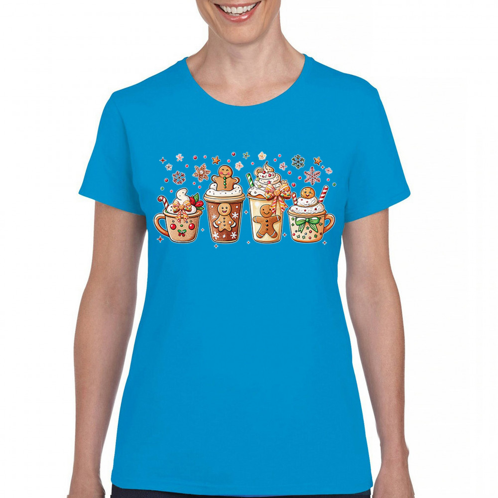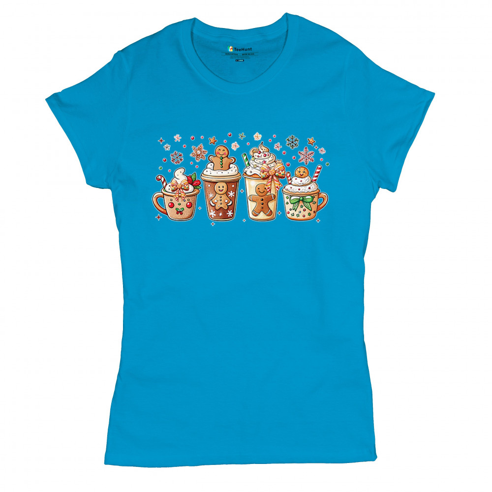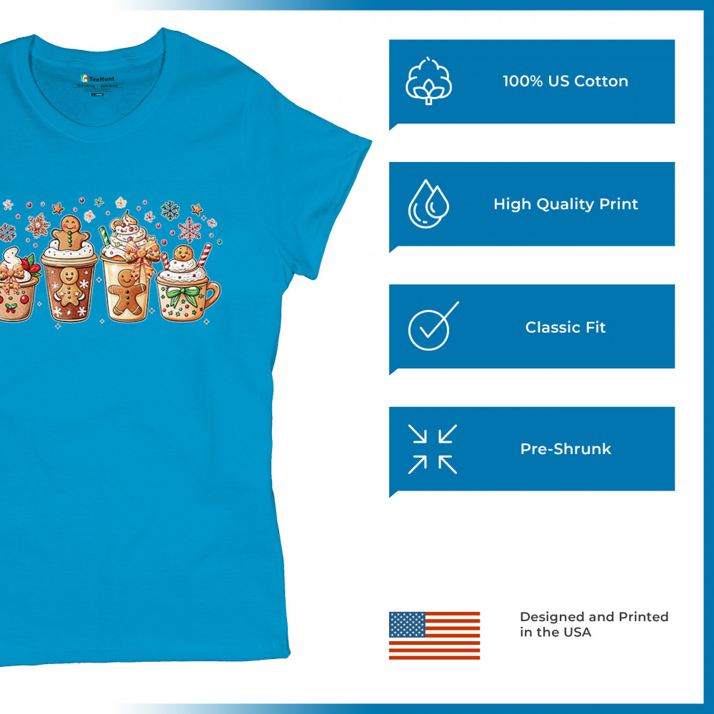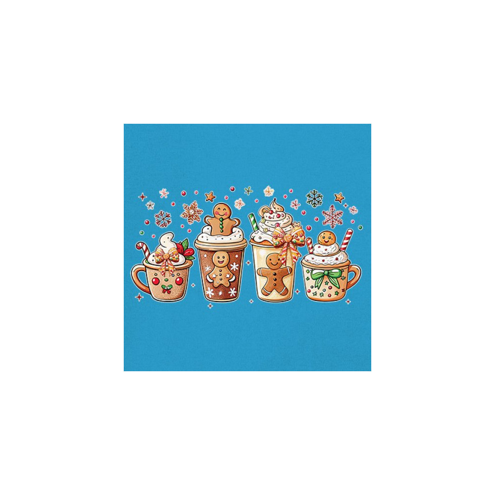 This cute Christmas drink design showcases gingerbread mugs, whipped cream, candy canes, sprinkles, and festive decorations for a warm winter aesthetic. Perfect for cocoa lovers, coffee fans, bakers, cozy holiday nights, gift exchanges, Christmas morning vibes, seasonal parties, and anyone who loves adorable dessert-inspired holiday art.