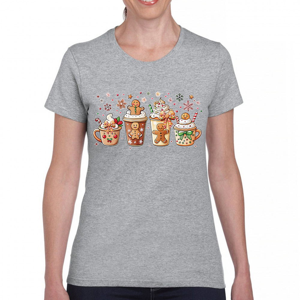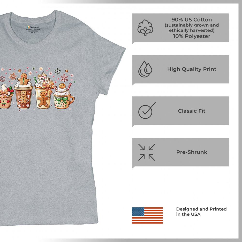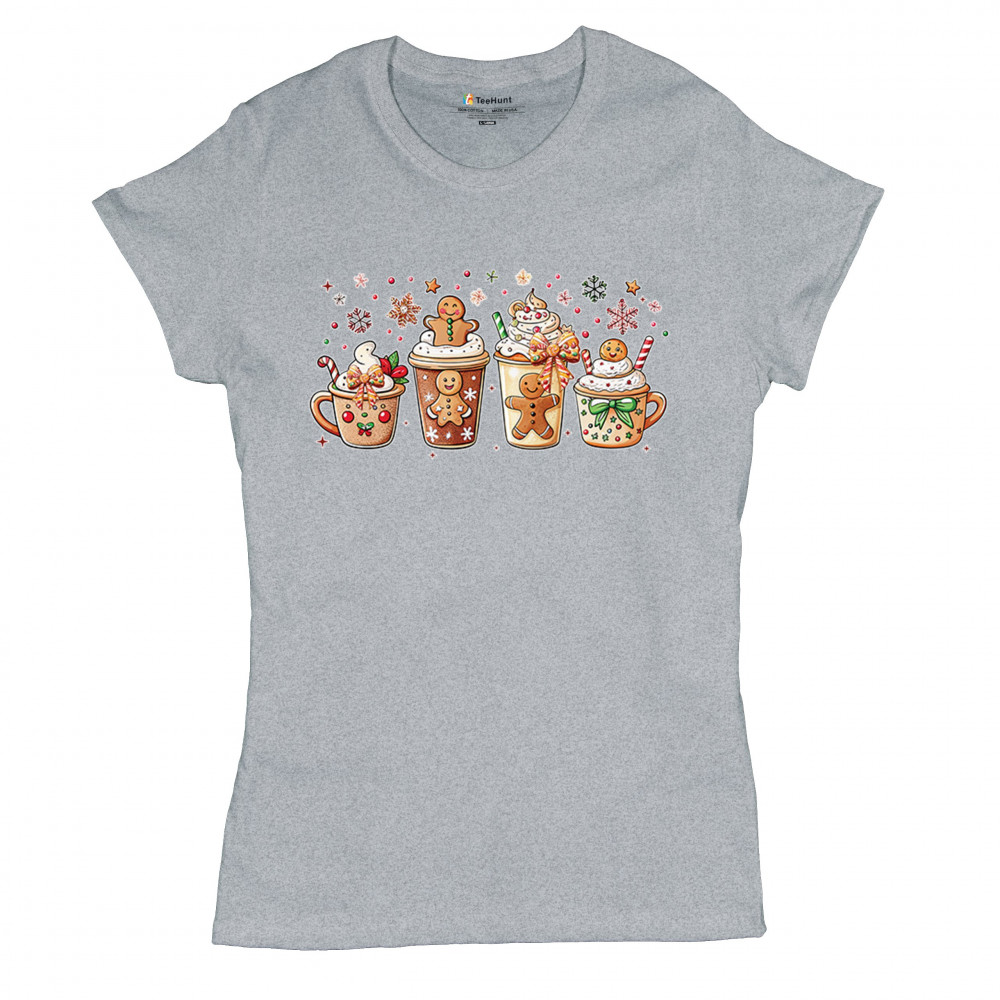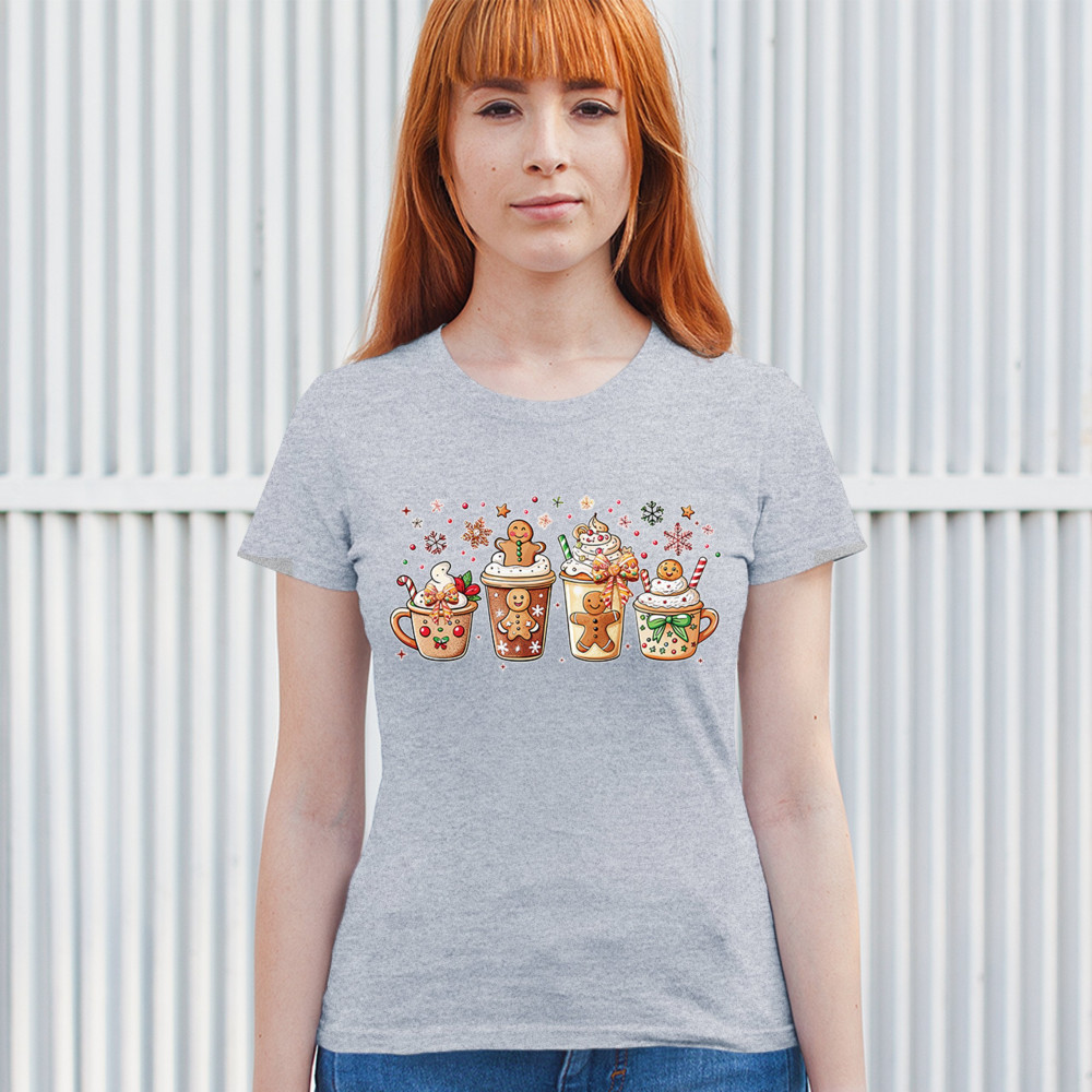 This cute Christmas drink design showcases gingerbread mugs, whipped cream, candy canes, sprinkles, and festive decorations for a warm winter aesthetic. Perfect for cocoa lovers, coffee fans, bakers, cozy holiday nights, gift exchanges, Christmas morning vibes, seasonal parties, and anyone who loves adorable dessert-inspired holiday art.