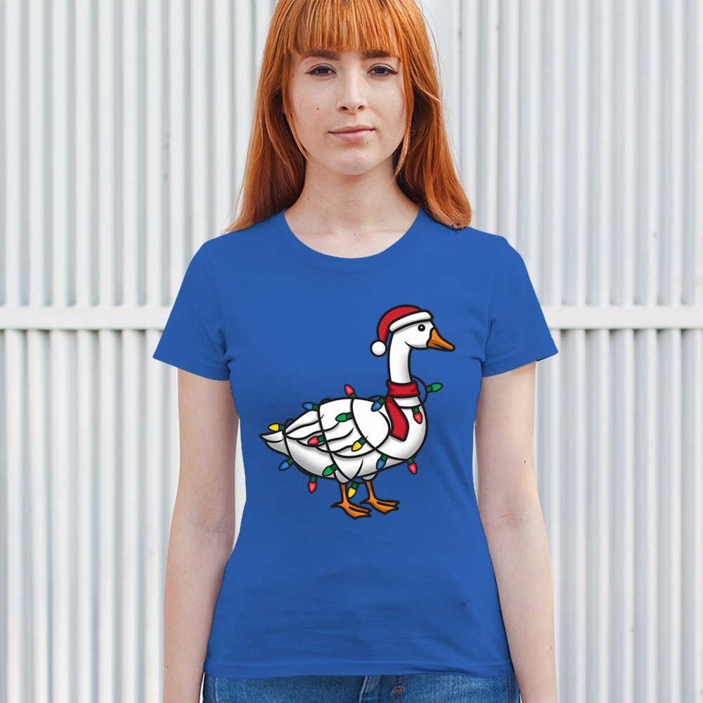This festive Christmas goose wrapped in bright holiday lights delivers a quirky mix of humor and seasonal charm. Perfect for white elephant exchanges, Secret Santa gifting, or anyone who loves fun holiday graphics. A standout design that blends playful animal humor, cheerful color, and unmistakable Christmas spirit for the entire season.