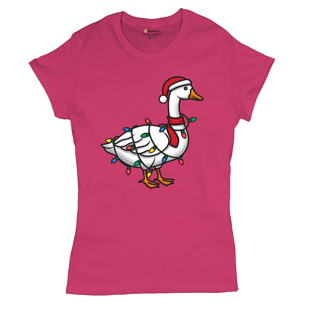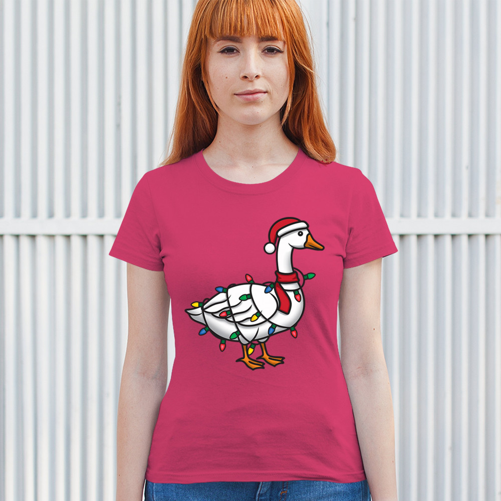Funny Christmas goose wrapped in lights with festive humor, perfect for holiday gifting, white elephant exchanges, and cheerful seasonal style.