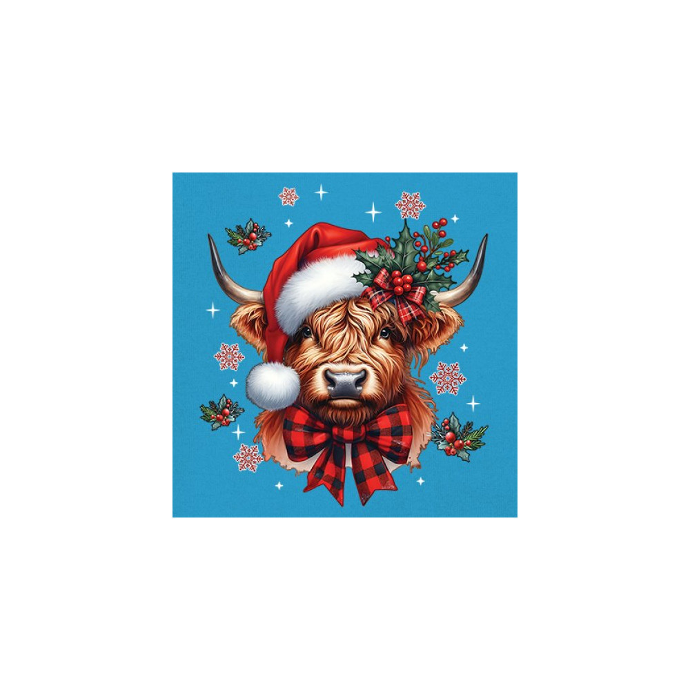 This adorable Highland cow Christmas design blends farmhouse charm, rustic holiday style, and classic winter décor. With a Santa hat, plaid bow, holly, and snowflakes, it delivers warm festive energy that fits perfectly with country décor, woodland themes, cozy farm aesthetics, holiday gifting, and seasonal celebrations. Ideal for fans of cute animals and cheerful Christmas graphics.c