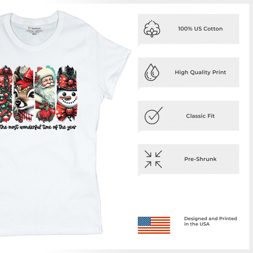 This Christmas design blends a decorated tree, sweet reindeer, vintage Santa, and a bright snowman for a classic seasonal look. Ideal for holiday lovers, winter gatherings, festive parties, gift exchanges, Christmas morning, and anyone who enjoys cheerful, nostalgic holiday art. A warm, eye-catching design that brings out the magic of the season.