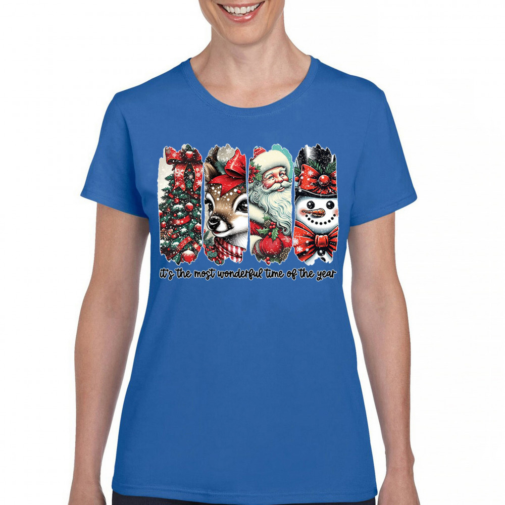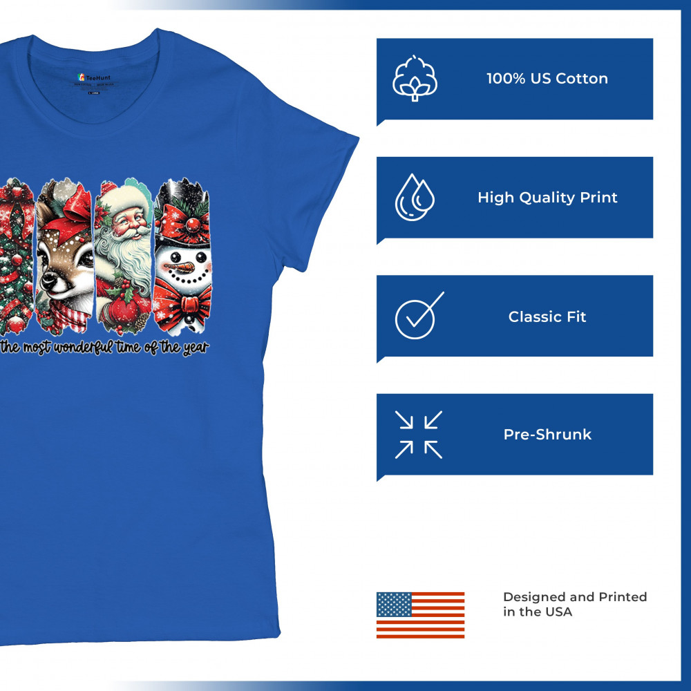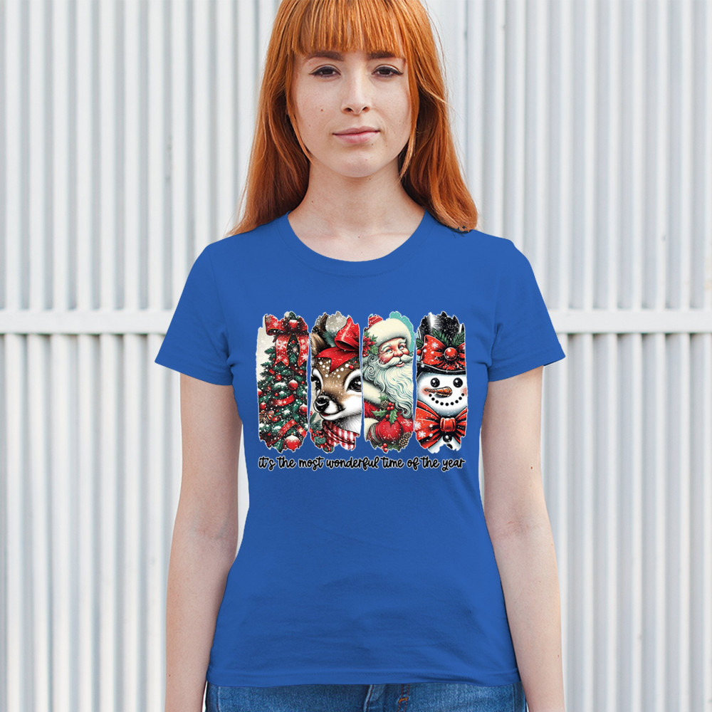 This Christmas design blends a decorated tree, sweet reindeer, vintage Santa, and a bright snowman for a classic seasonal look. Ideal for holiday lovers, winter gatherings, festive parties, gift exchanges, Christmas morning, and anyone who enjoys cheerful, nostalgic holiday art. A warm, eye-catching design that brings out the magic of the season.
