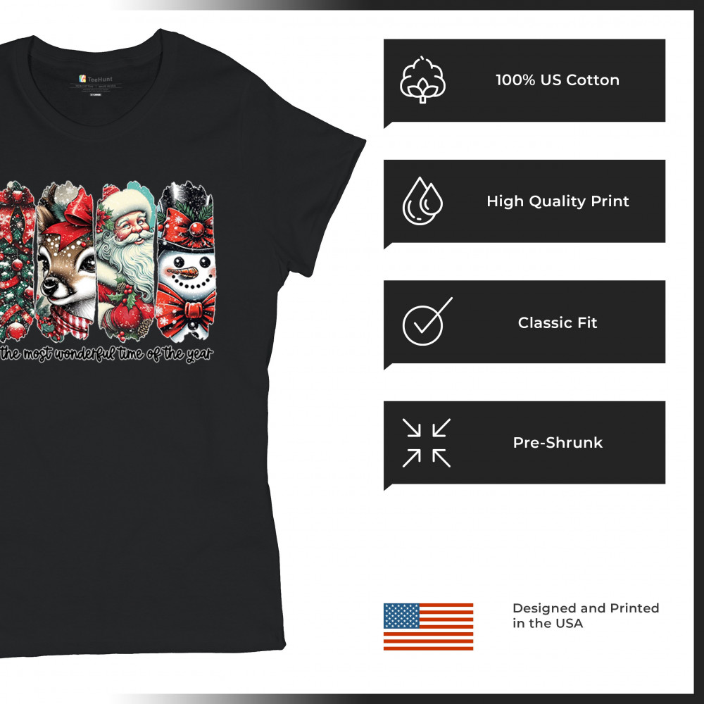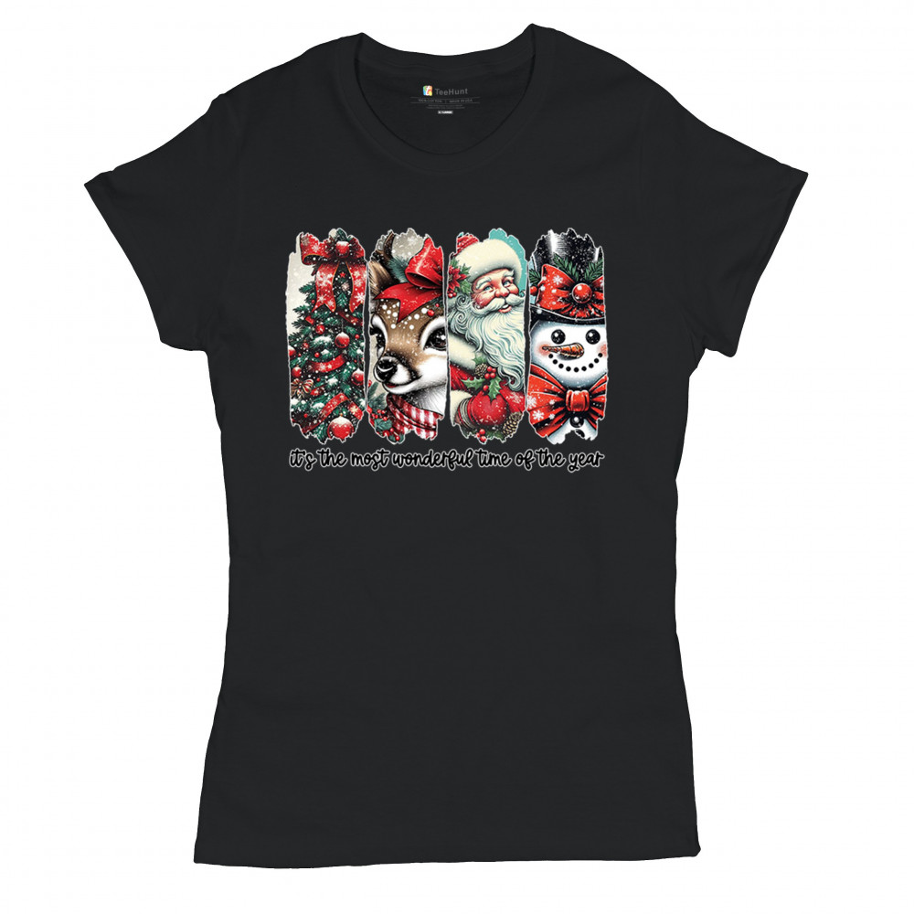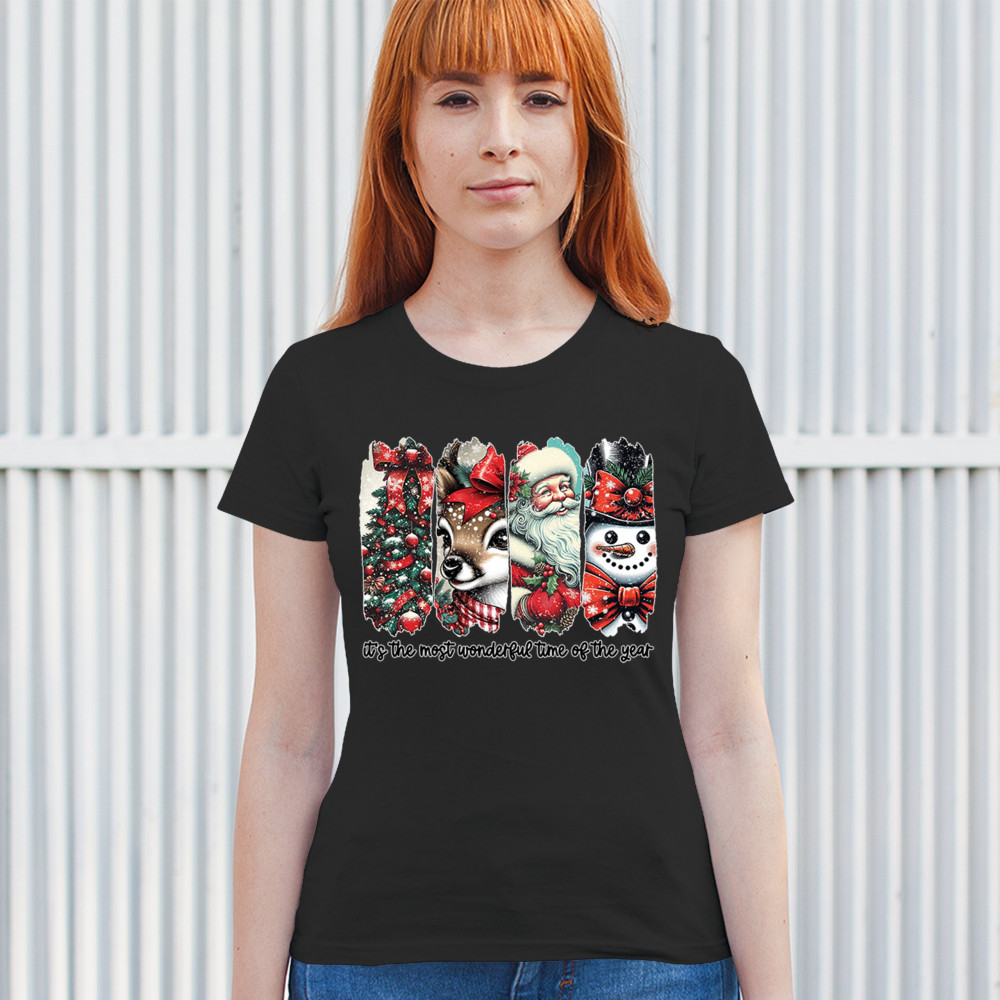 This Christmas design blends a decorated tree, sweet reindeer, vintage Santa, and a bright snowman for a classic seasonal look. Ideal for holiday lovers, winter gatherings, festive parties, gift exchanges, Christmas morning, and anyone who enjoys cheerful, nostalgic holiday art. A warm, eye-catching design that brings out the magic of the season.