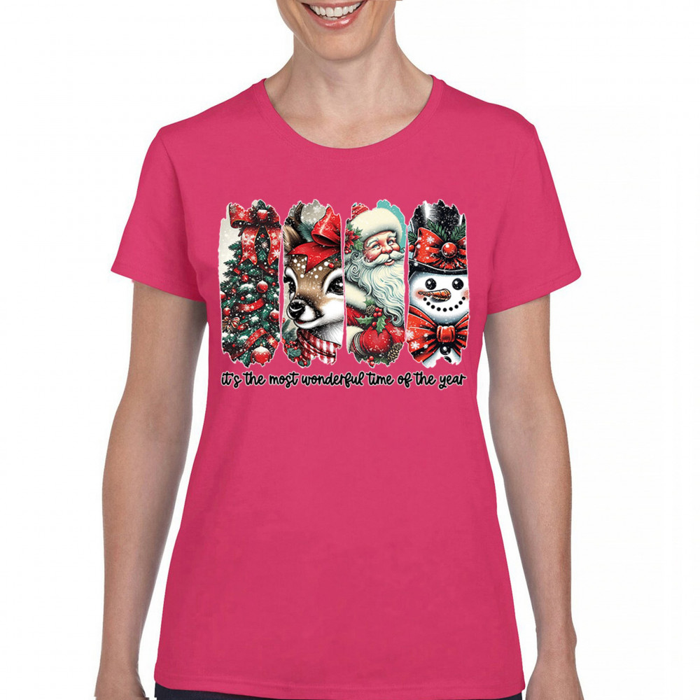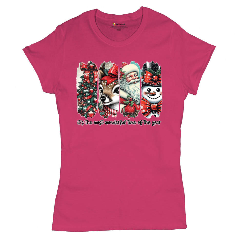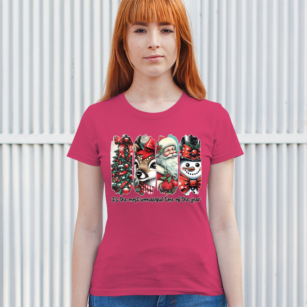 This Christmas design blends a decorated tree, sweet reindeer, vintage Santa, and a bright snowman for a classic seasonal look. Ideal for holiday lovers, winter gatherings, festive parties, gift exchanges, Christmas morning, and anyone who enjoys cheerful, nostalgic holiday art. A warm, eye-catching design that brings out the magic of the season.