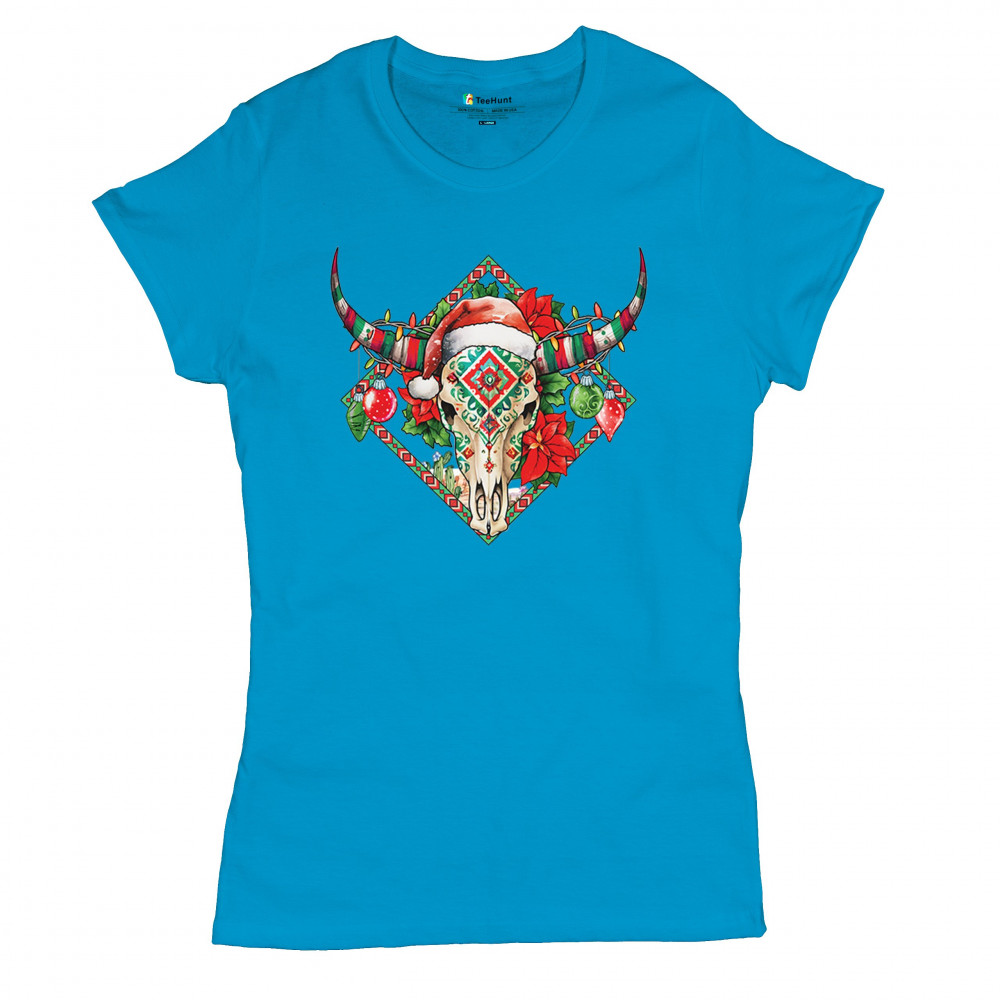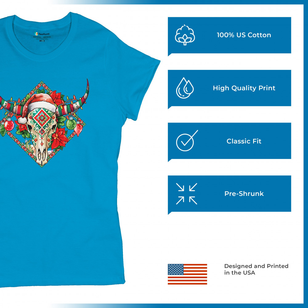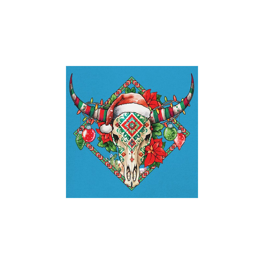 Blend Southwestern charm with holiday cheer! This vibrant skull design with poinsettias and ornaments is perfect for festive parties and unique gifts!