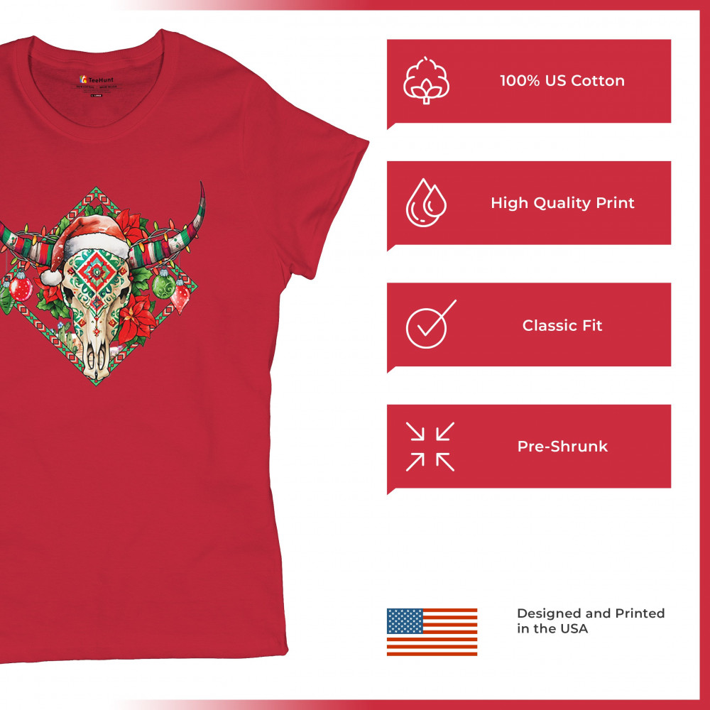 Blend Southwestern charm with holiday cheer! This vibrant skull design with poinsettias and ornaments is perfect for festive parties and unique gifts!