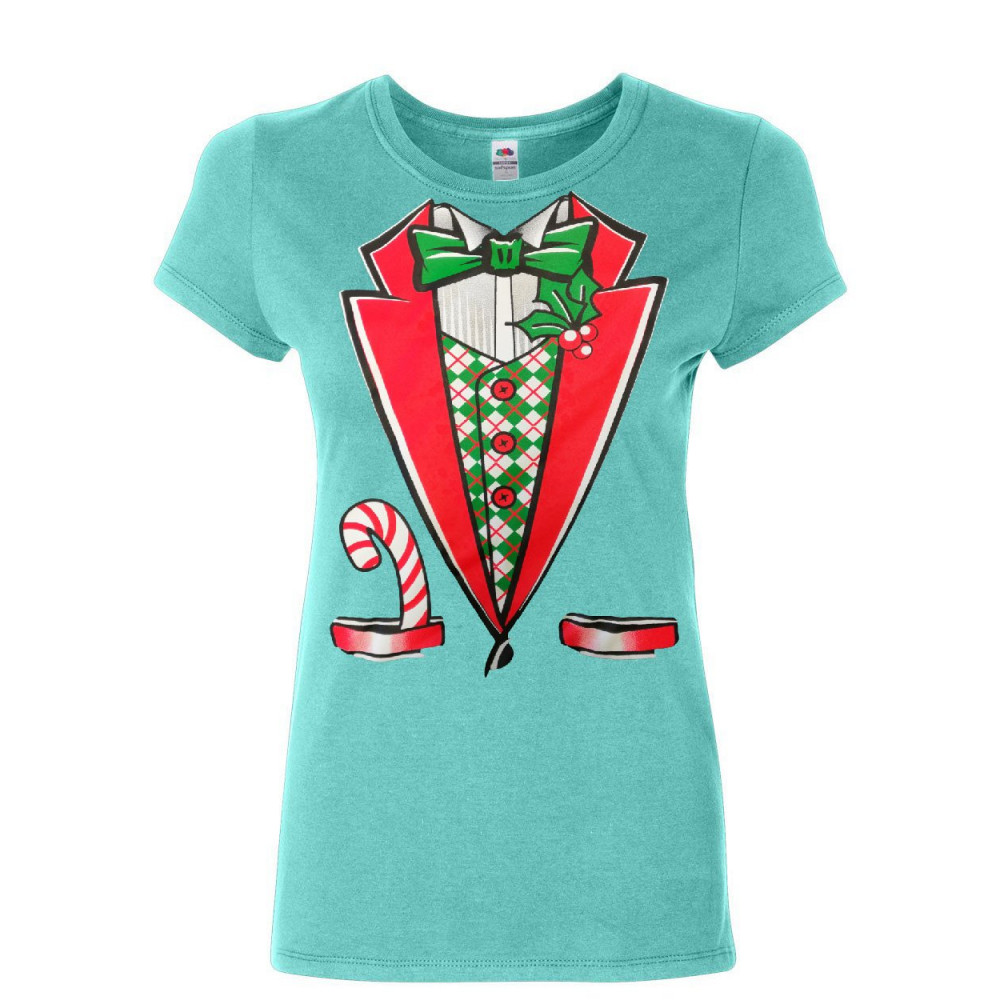 CHRISTMAS TUXEDO cotton t-shirt funny xmas santa elf light blue