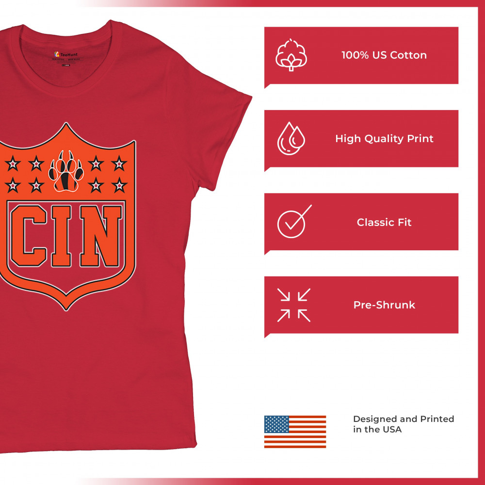 Celebrate your love for Cincinnati football with this CIN shield paw design, blending retro football crest style with vintage football culture. Perfect for Cincinnati sports culture, Cincinnati champions, and Cincinnati football nation, this design embodies underdog spirit, Cincinnati grit, and college football culture. A bold look for Saturday football vibes, Sunday football, and every big game.