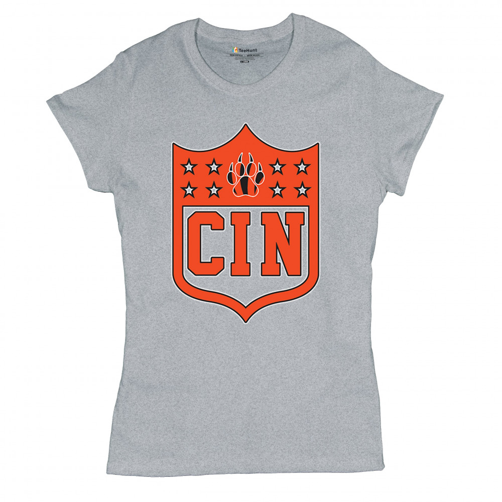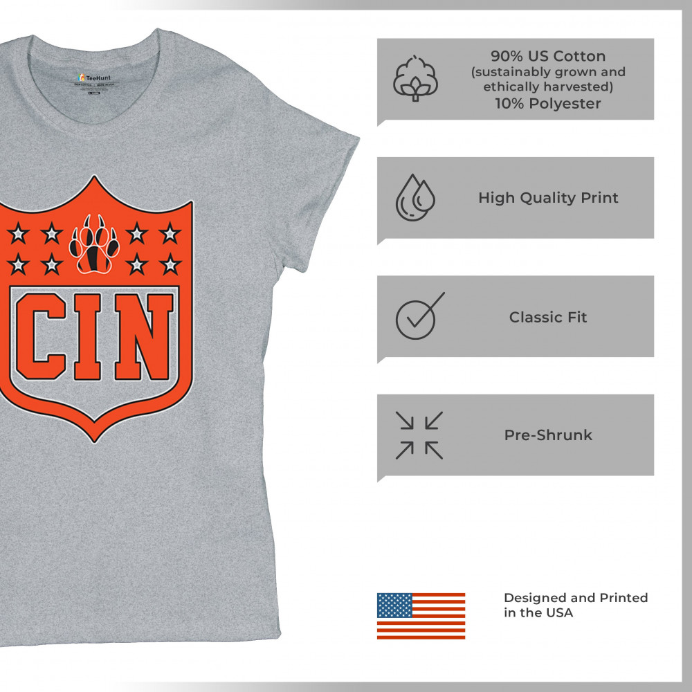 Bold CIN paw shield for Cincinnati football fans. Retro crest style, underdog spirit, and vintage game day gear for true Cincinnati grit.
