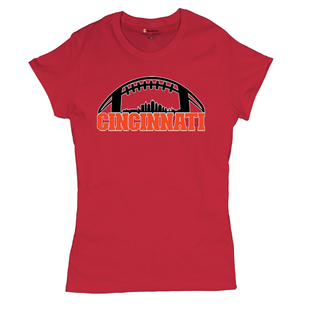 Discover the perfect blend of football passion and Cincinnati pride with this eye-catching design. Featuring the Queen City skyline under a bold football arch, this graphic is ideal for fans cheering on their team or celebrating their love for the city. Whether at a tailgate, game, or casual outing, this design lets you show your loyalty in style. A thoughtful gift for Cincinnati football enthusiasts!