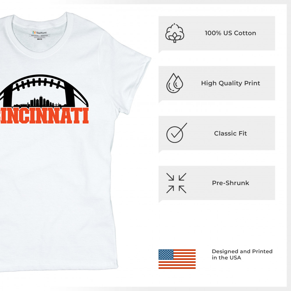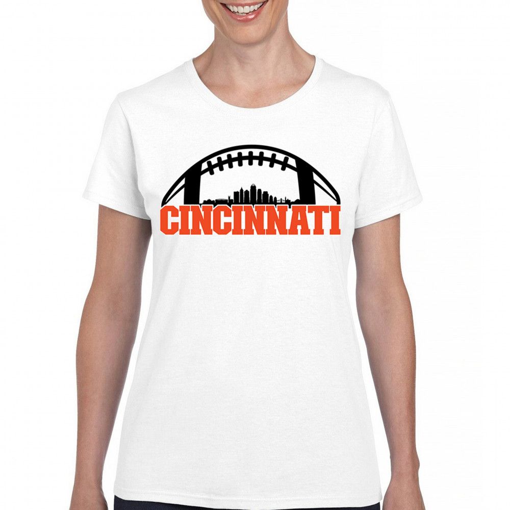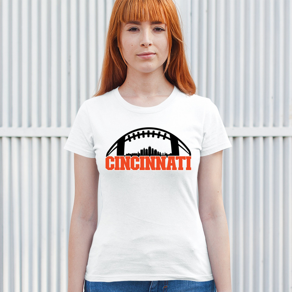 Celebrate Cincinnati and football with this bold skyline design under a football arch. Perfect for fans, tailgates, and game days!