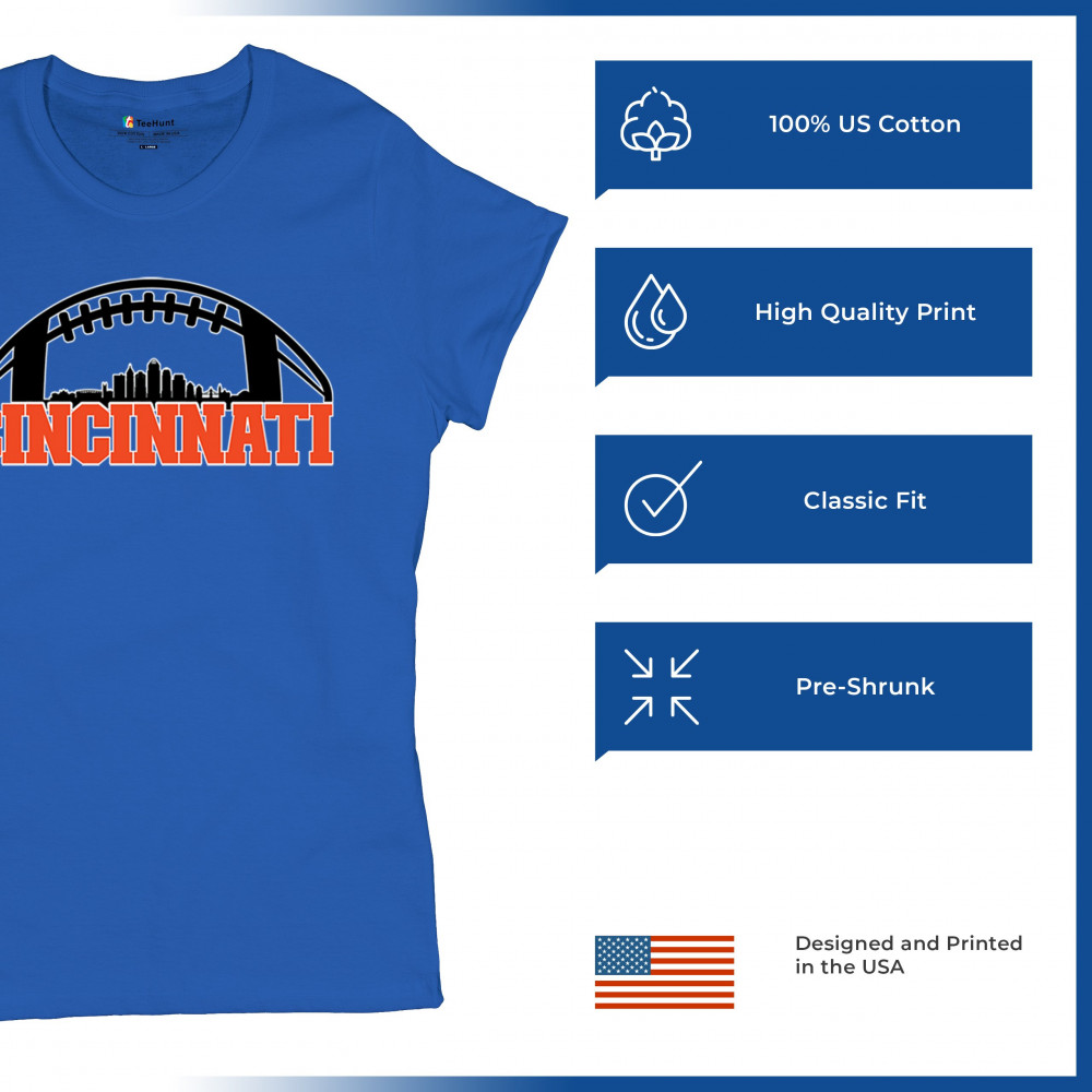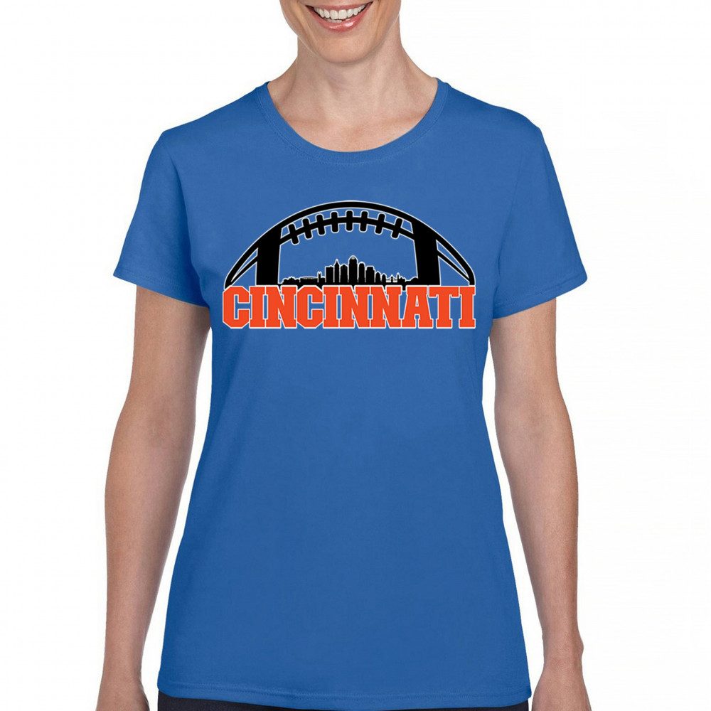 Celebrate Cincinnati and football with this bold skyline design under a football arch. Perfect for fans, tailgates, and game days!