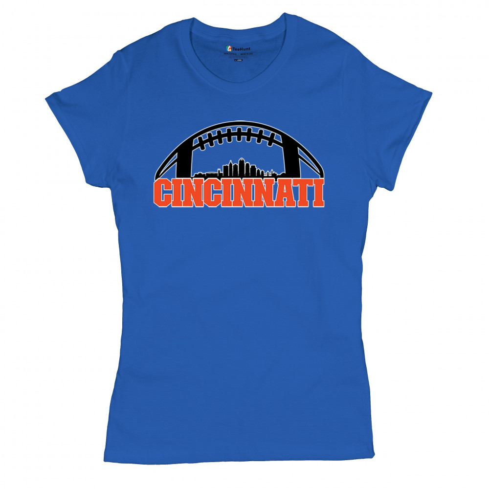 Discover the perfect blend of football passion and Cincinnati pride with this eye-catching design. Featuring the Queen City skyline under a bold football arch, this graphic is ideal for fans cheering on their team or celebrating their love for the city. Whether at a tailgate, game, or casual outing, this design lets you show your loyalty in style. A thoughtful gift for Cincinnati football enthusiasts!