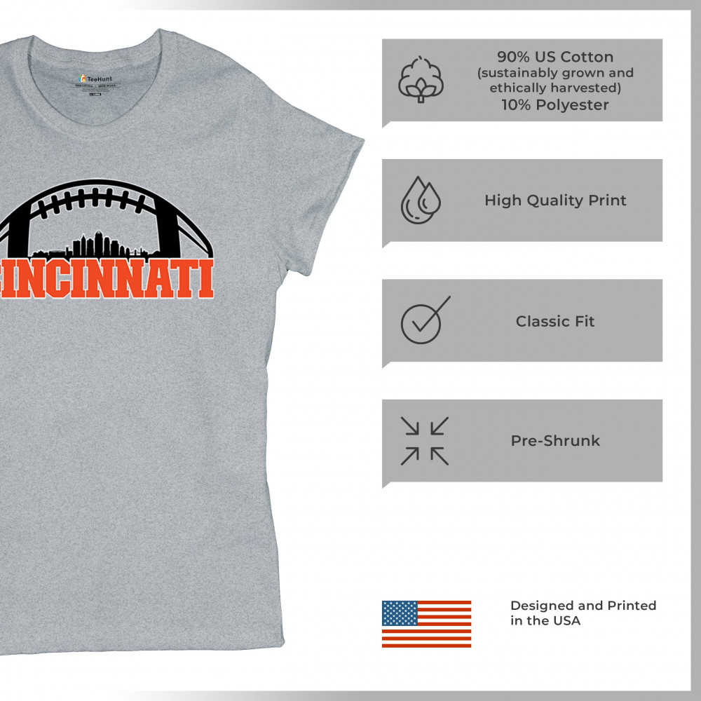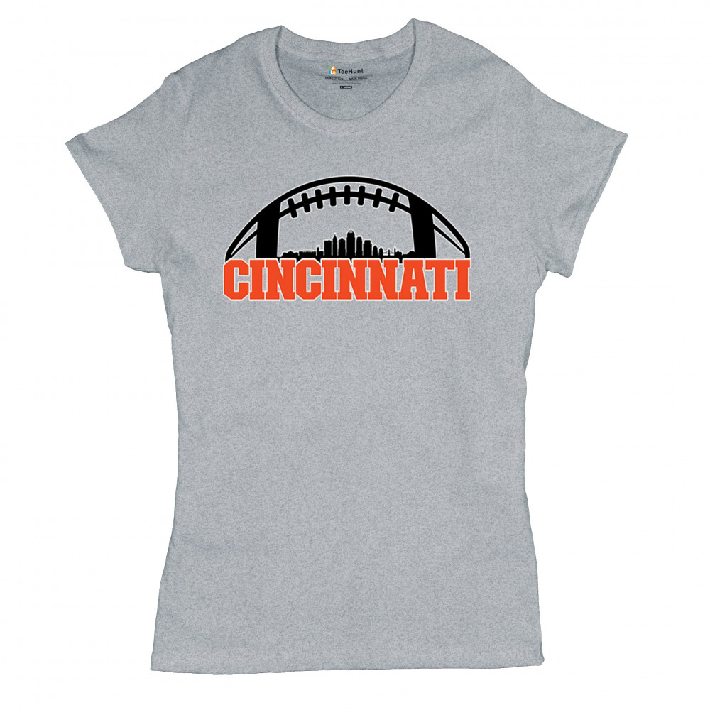 Celebrate Cincinnati and football with this bold skyline design under a football arch. Perfect for fans, tailgates, and game days!