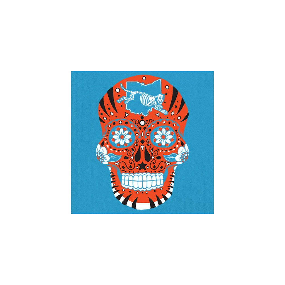Cinci Sugar Skull with Queen City Paw, underdog grit, black & orange pride, Game Day energy, and playoff vibes.