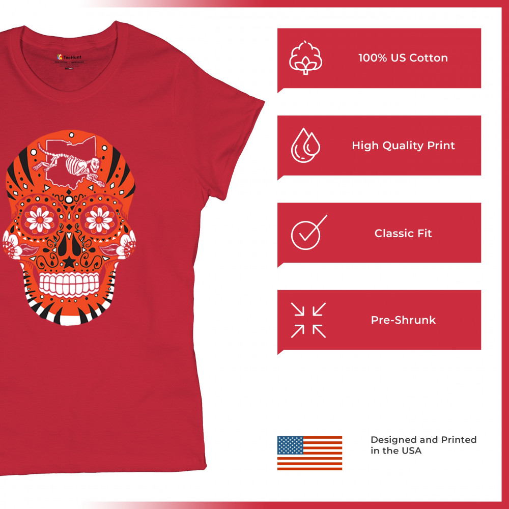 Celebrate Cincinnati football with this Sugar Skull design featuring the Queen City Paw. With underdog grit, black & orange pride, and Saturday football culture, it’s made for Game Day excitement, playoff energy, and fantasy league rivalries. A bold calavera for passionate Cincinnati fans.