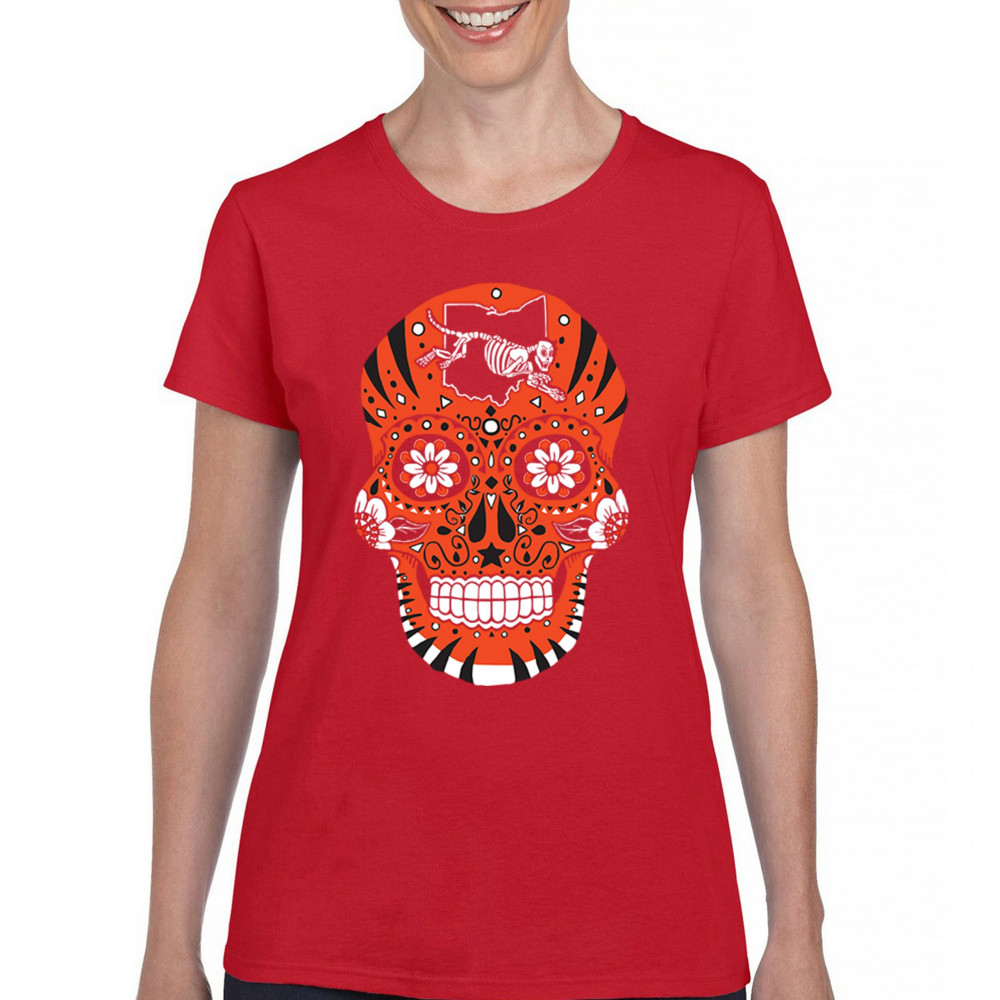 Cinci Sugar Skull with Queen City Paw, underdog grit, black & orange pride, Game Day energy, and playoff vibes.