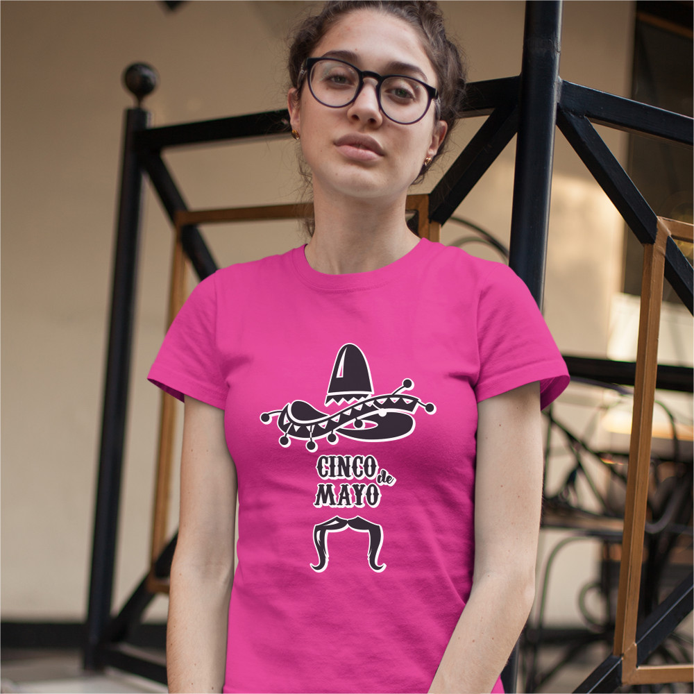 CINCO DE MAYO t-shrit funny party sombrero mexican culture fiesta women's tee hot pink
