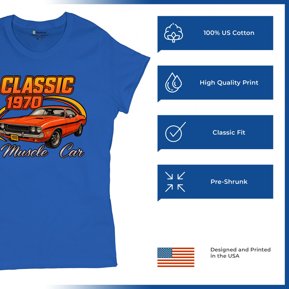 Show your pride for American muscle with this bold 1970 design featuring a classic orange coupe in retro detail. Perfect for gearheads, vintage car lovers, and collectors who live for the sound of old-school performance. A tribute to the raw attitude and street dominance of 1970 muscle.