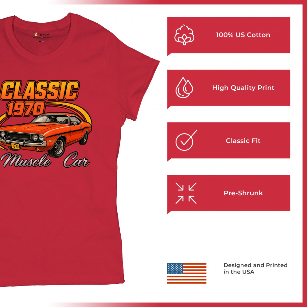 Show your pride for American muscle with this bold 1970 design featuring a classic orange coupe in retro detail. Perfect for gearheads, vintage car lovers, and collectors who live for the sound of old-school performance. A tribute to the raw attitude and street dominance of 1970 muscle.