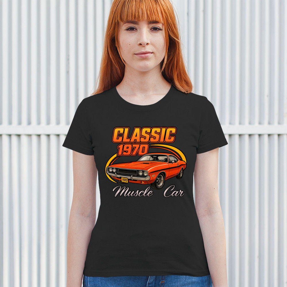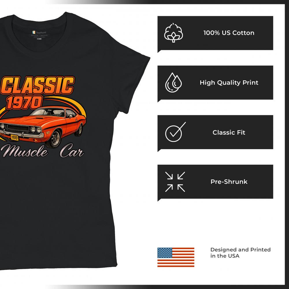 CLASSIC 1970 MUSCLE CAR t-shirt american legendary performance women's tee black