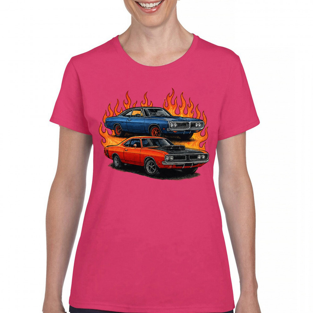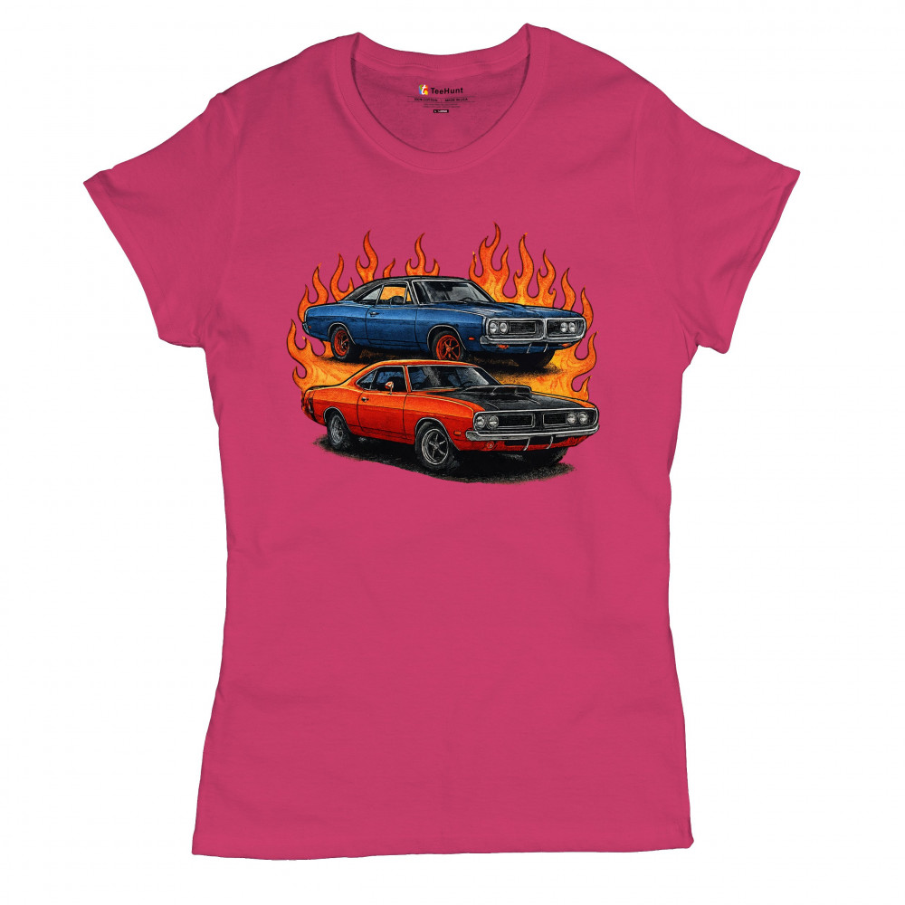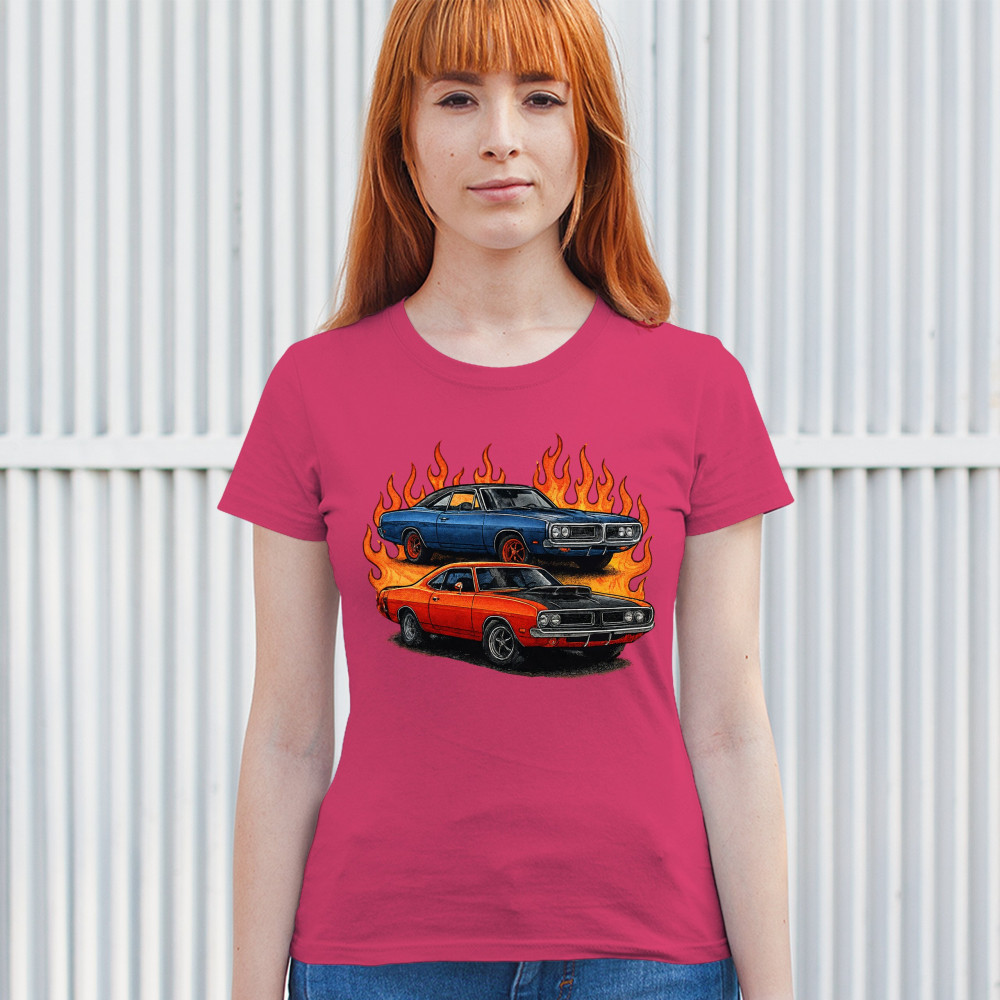 This flame-wrapped design showcases two classic muscle cars set ablaze with attitude, style, and vintage horsepower. Made for adrenaline seekers, rev heads, and car lovers who thrive on raw speed and retro fire. Whether at a burnout meet or a car show, this design lets your muscle car pride burn bright.