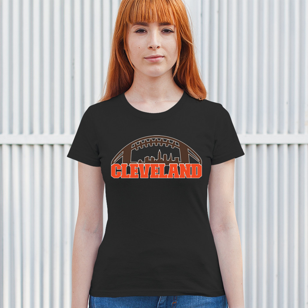 Unleash your Cleveland spirit with this standout football-themed design, featuring the city's skyline in bold detail. Ideal for game day celebrations, tailgate parties, or casual wear, this design embodies the energy and pride of Cleveland's sports culture. Whether you're a lifelong fan or just love the city's vibe, this is a must-have for every Cleveland supporter.