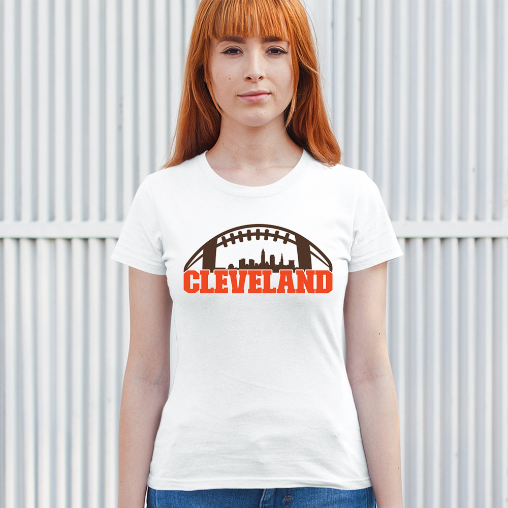 Unleash your Cleveland spirit with this standout football-themed design, featuring the city's skyline in bold detail. Ideal for game day celebrations, tailgate parties, or casual wear, this design embodies the energy and pride of Cleveland's sports culture. Whether you're a lifelong fan or just love the city's vibe, this is a must-have for every Cleveland supporter.