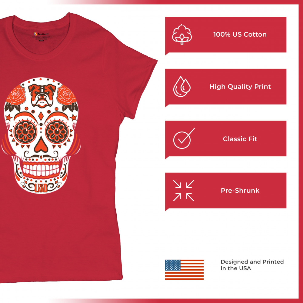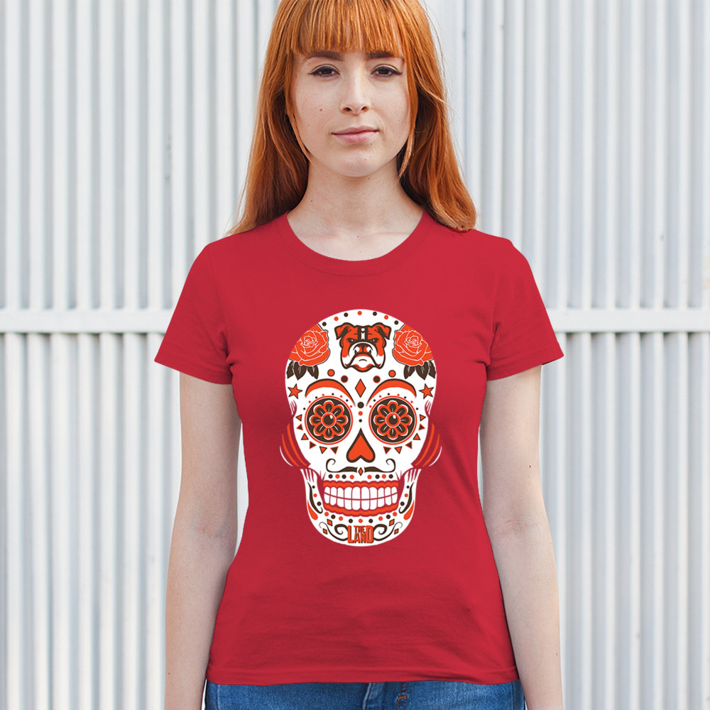 Cleveland football fans can celebrate with this bold Sugar Skull design. Featuring Lake Erie pride, Rust Belt football, and orange & brown heritage, it captures the city’s blue-collar grit and Game Day passion. A perfect calavera for fantasy leagues, playoff energy, and die-hard fan traditions.