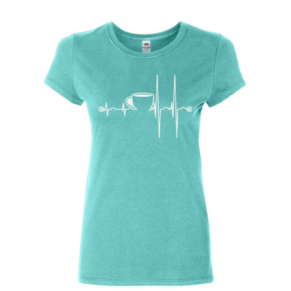 COFFEE CUP HEARTBEAT women's t-shirt energy waking up coffee drinker shirt light blue