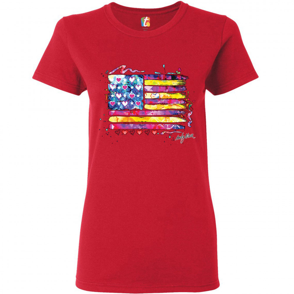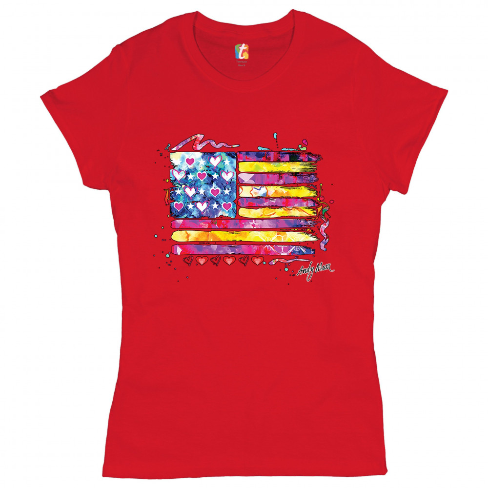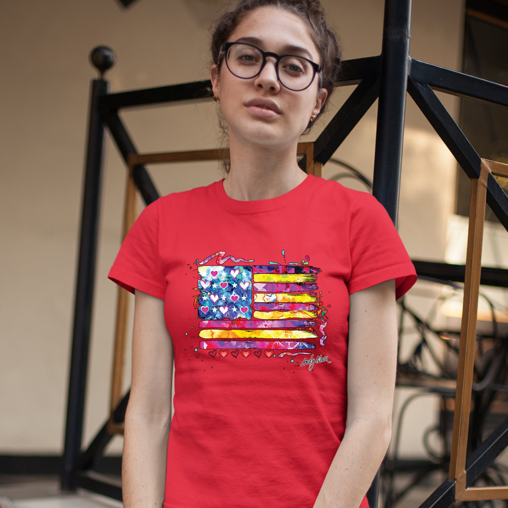 COLORFUL AMERICAN FLAG t-shirt patriotic 4th of july independence women's tee red