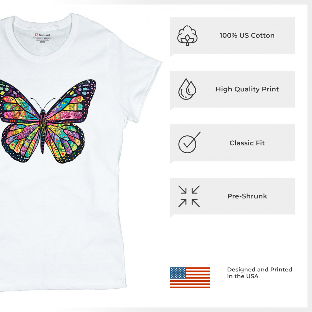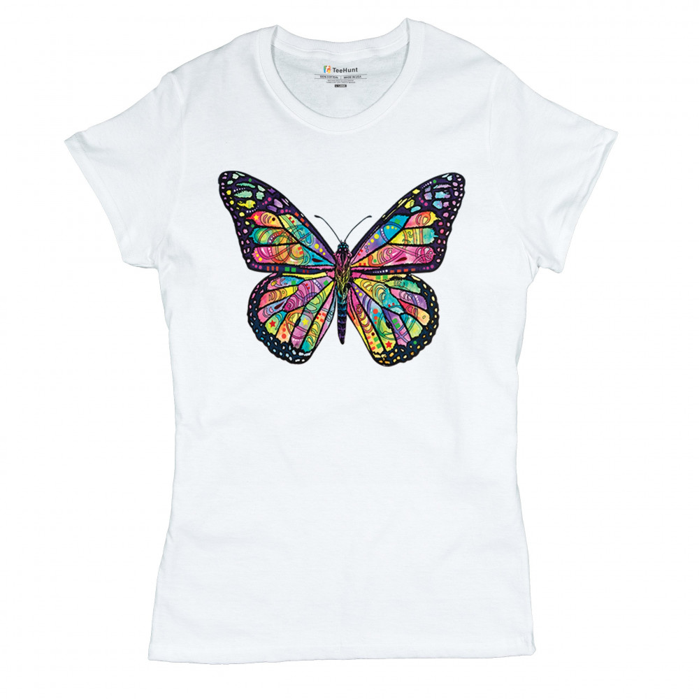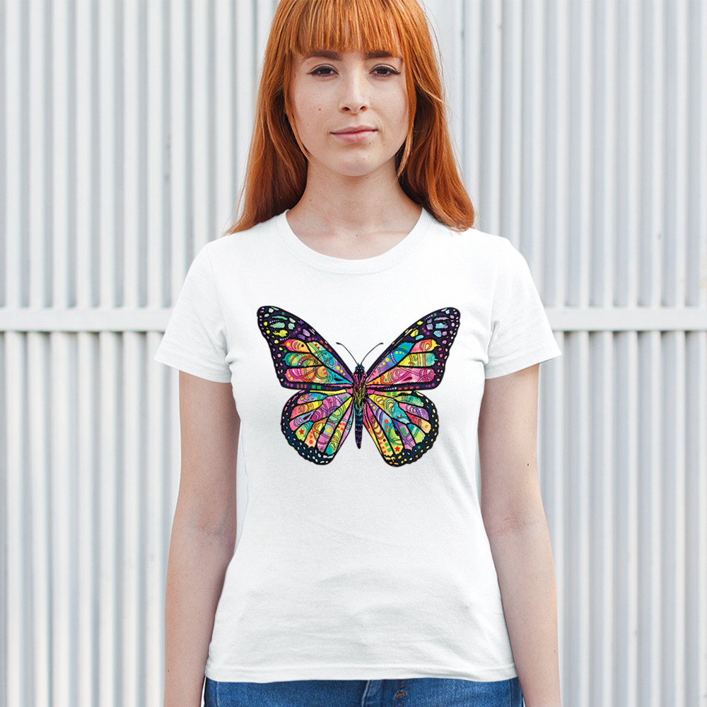 COLORFUL NEON BUTTERFLY t-shirt dean russo beautiful nature women's tee white