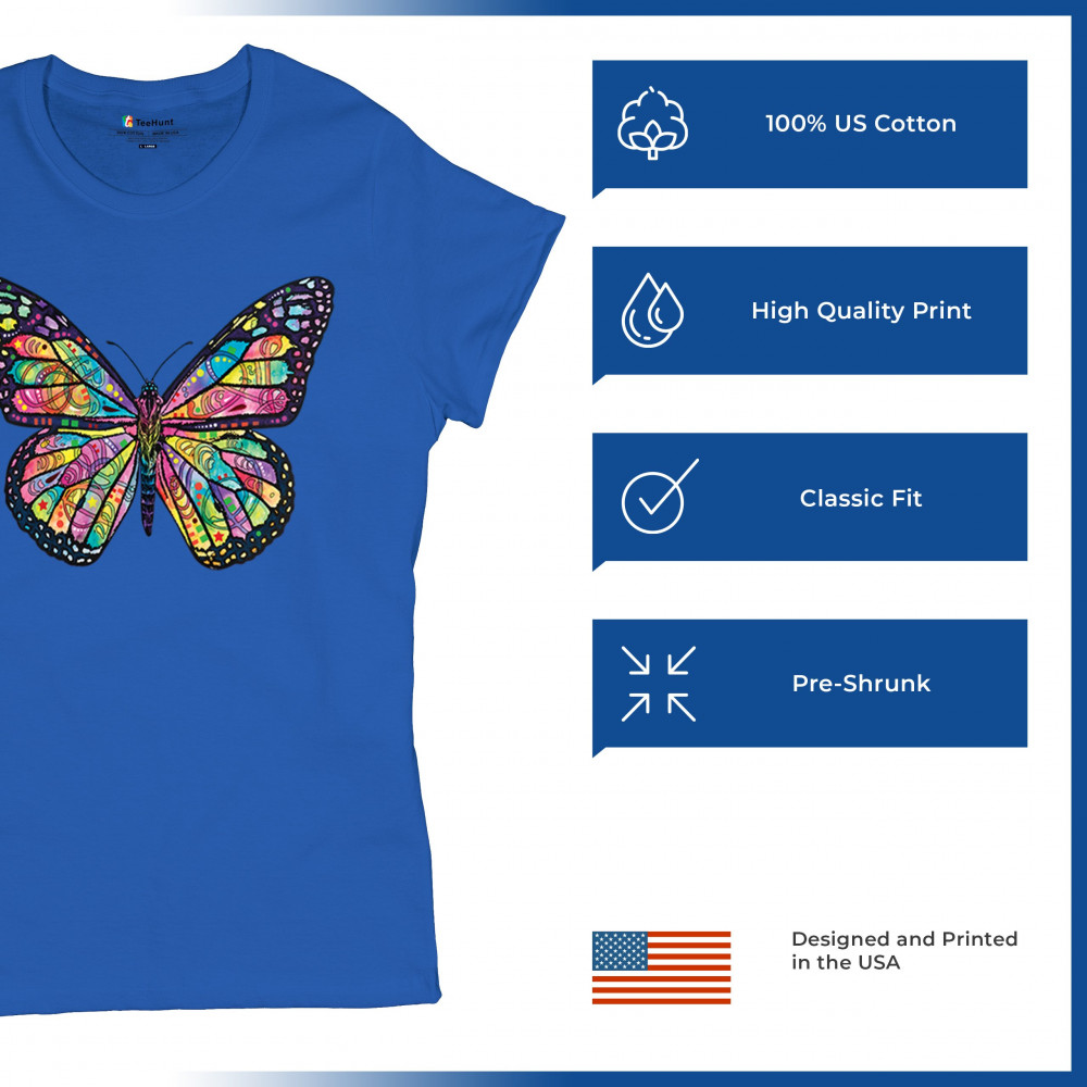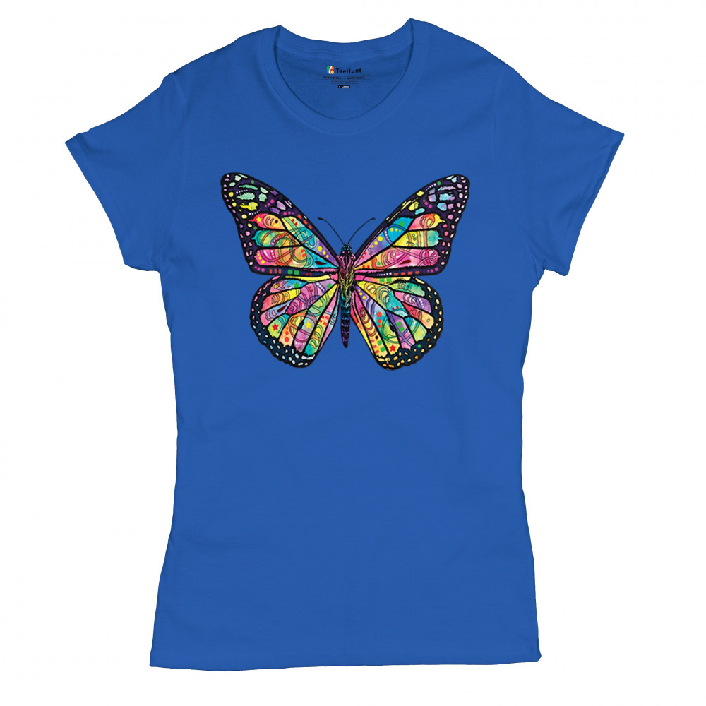 COLORFUL NEON BUTTERFLY t-shirt dean russo beautiful nature women's tee royal blue