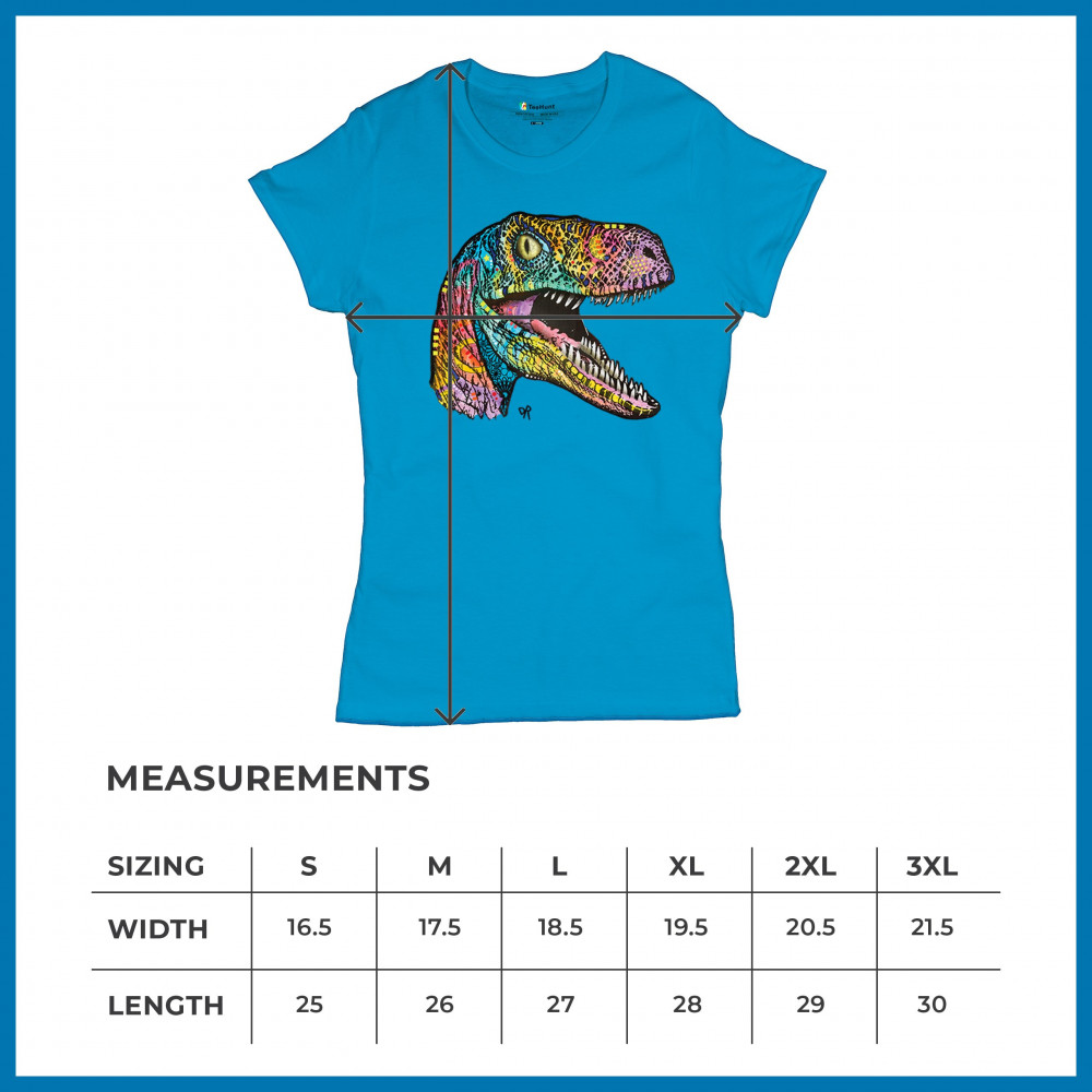 COLORFUL RAPTOR t-shirt dean russo neon jurassic dinosaur women's tee light blue