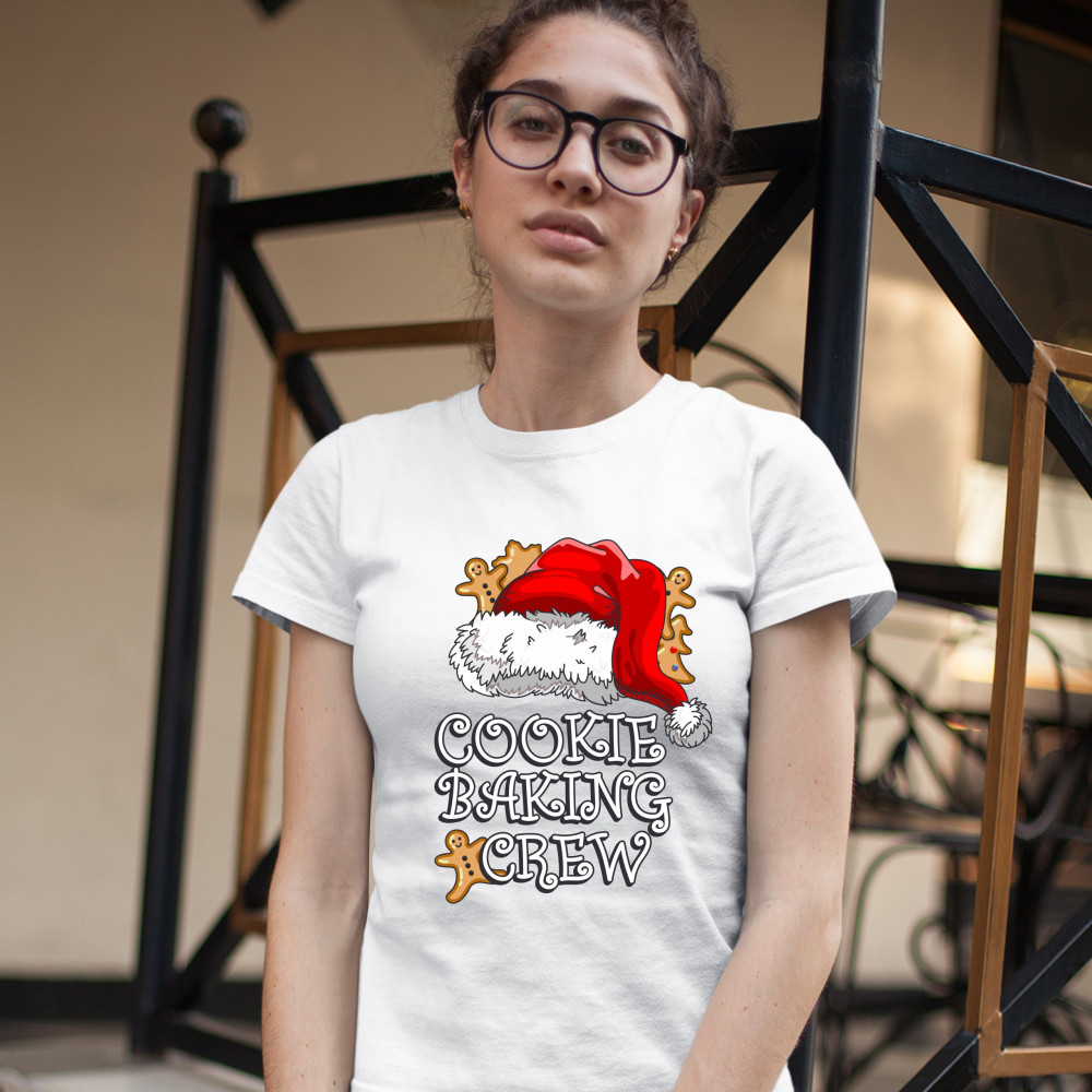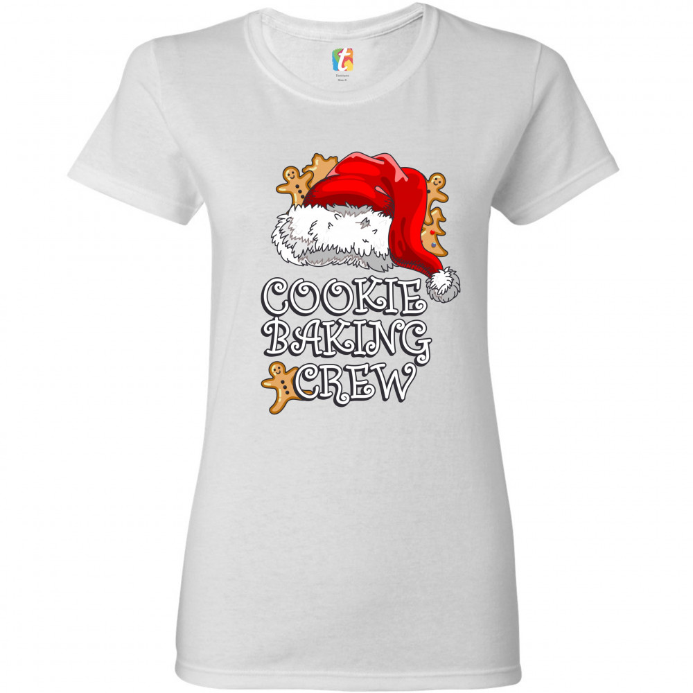 COOKIE BAKING CRUE t-shirt santa's hat christmas gingerbread men women's tee white