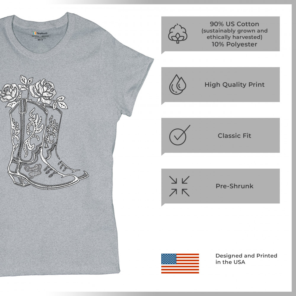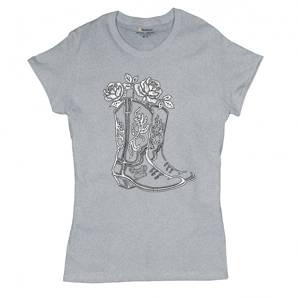 Embrace your southern roots with this rustic “Country Girl†design featuring embroidered western boots filled with roses. This floral cowboy boot graphic blends cowgirl pride, vintage charm, and sketch-style art—perfect for rodeos, concerts, barn dances, or sunny fairground strolls.