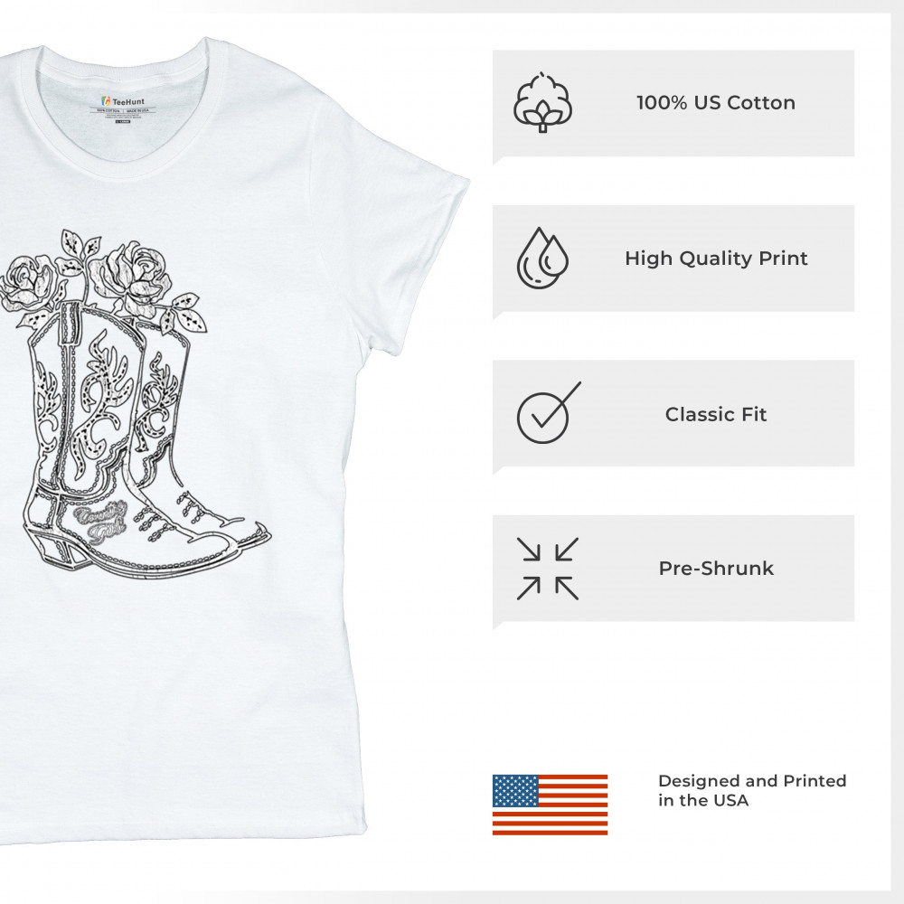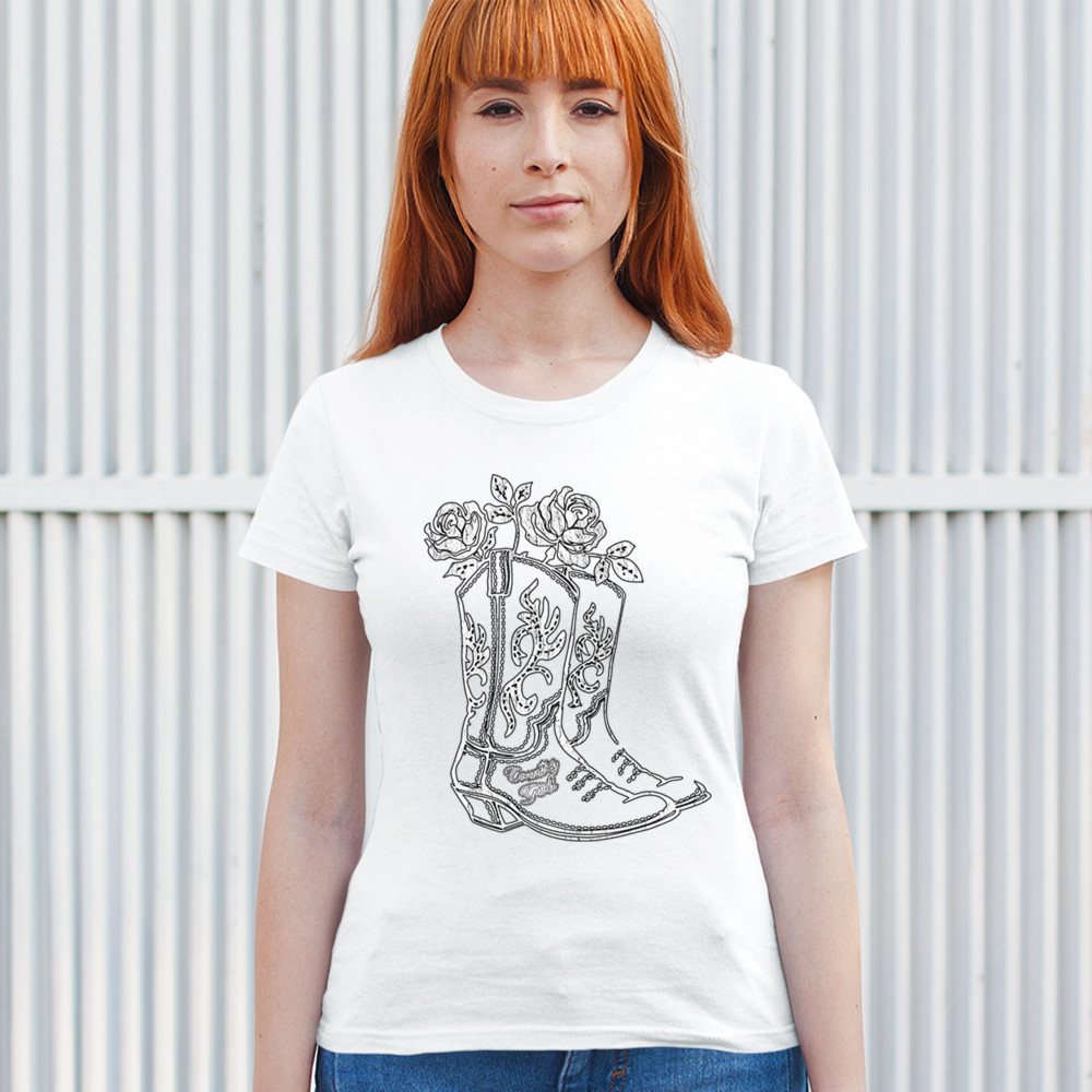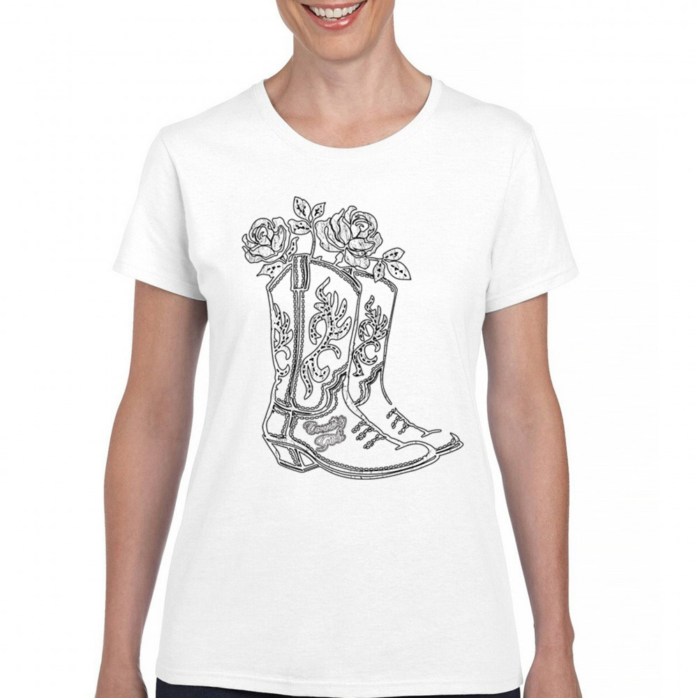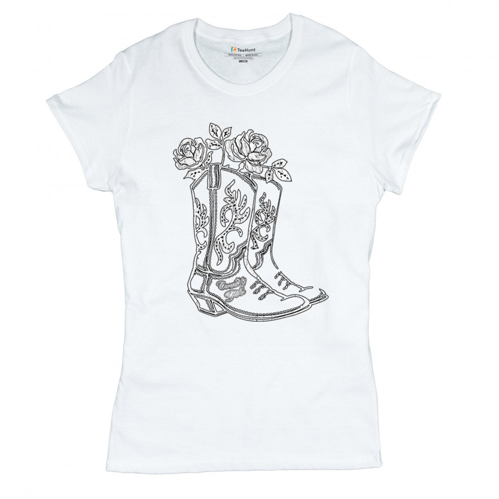 Embrace your southern roots with this rustic “Country Girl†design featuring embroidered western boots filled with roses. This floral cowboy boot graphic blends cowgirl pride, vintage charm, and sketch-style art—perfect for rodeos, concerts, barn dances, or sunny fairground strolls.