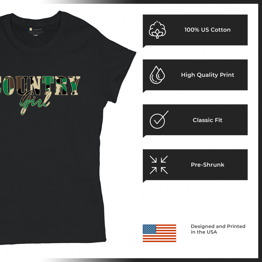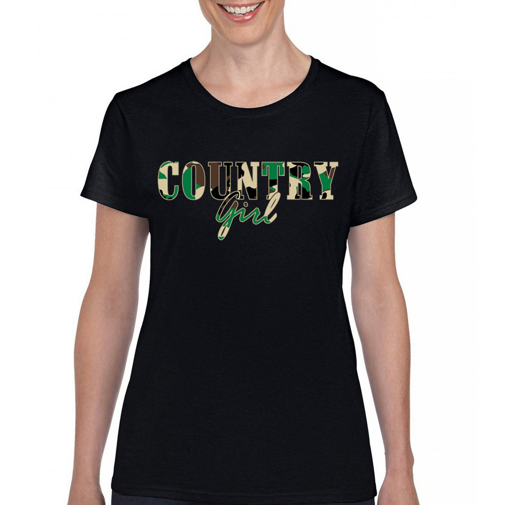 COUNTRY GIRL CAMO t-shirt small town cowgirl farm life military women's tee black