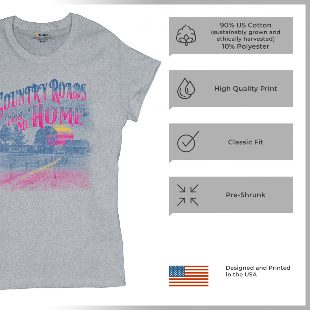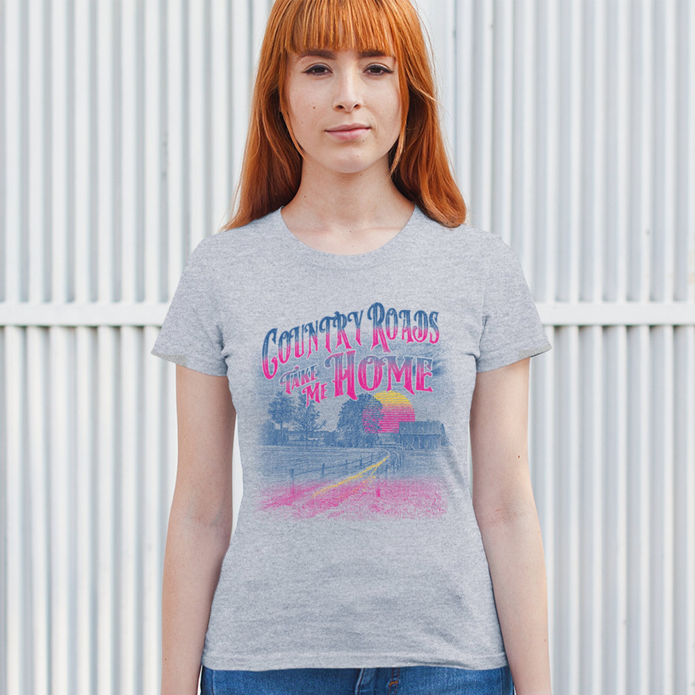 Bold and nostalgic, this "Country Roads Take Me Home" design blends retro-style typography with a vivid sunset scene. It’s perfect for fans of Americana music, scenic travel, and rural freedom. Great for road trips, camping, music events, or everyday wear that channels the spirit of country life.