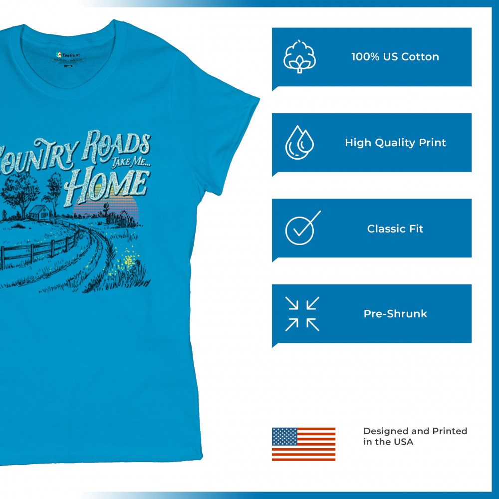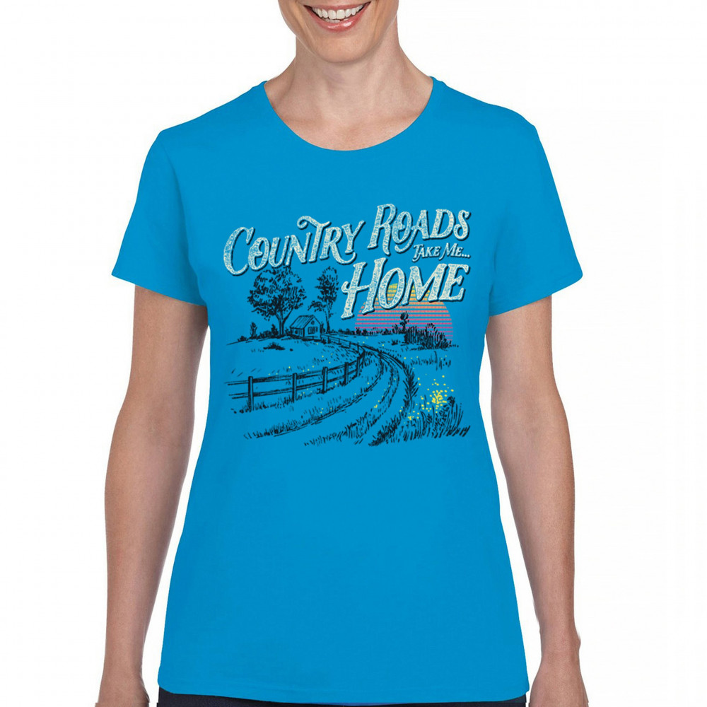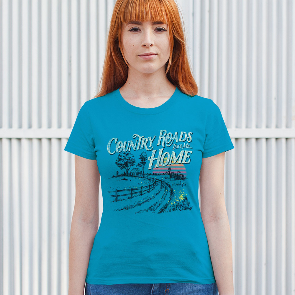 Celebrate your love for small town charm and scenic drives with this nostalgic country roads design. Featuring a bold "Take Me Home" message over a retro-styled sunset, it’s ideal for road trips, summer nights, fairs, concerts, and rural adventures. Let your wanderlust and country soul shine in every mile.