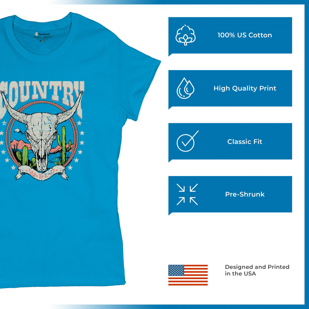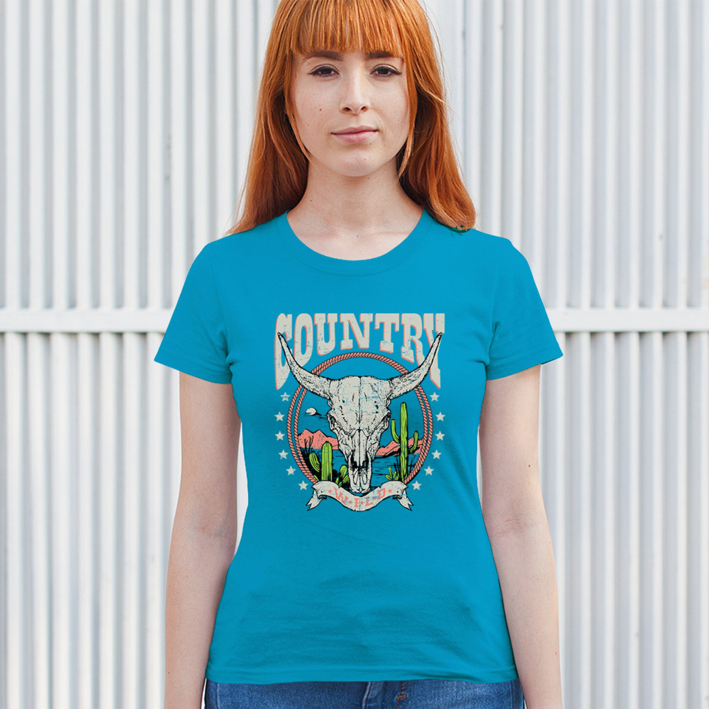 Country Wild channels western spirit through a striking steer skull and desert landscape. Ideal for country music lovers, rodeo cowboys, and boho souls who live for farm life and barn dances. This design shouts freedom, wild spirit, and small town pride, perfect for those who carry their country roots wherever they roam.