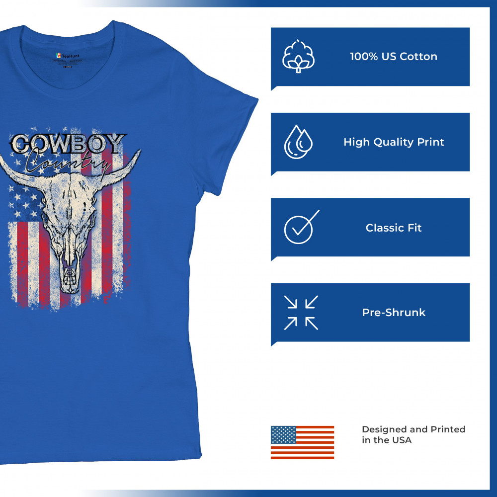 Cowboy Country steer skull design fuses rustic Americana, rodeo style, western heritage, and desert vibes for true frontier spirit.