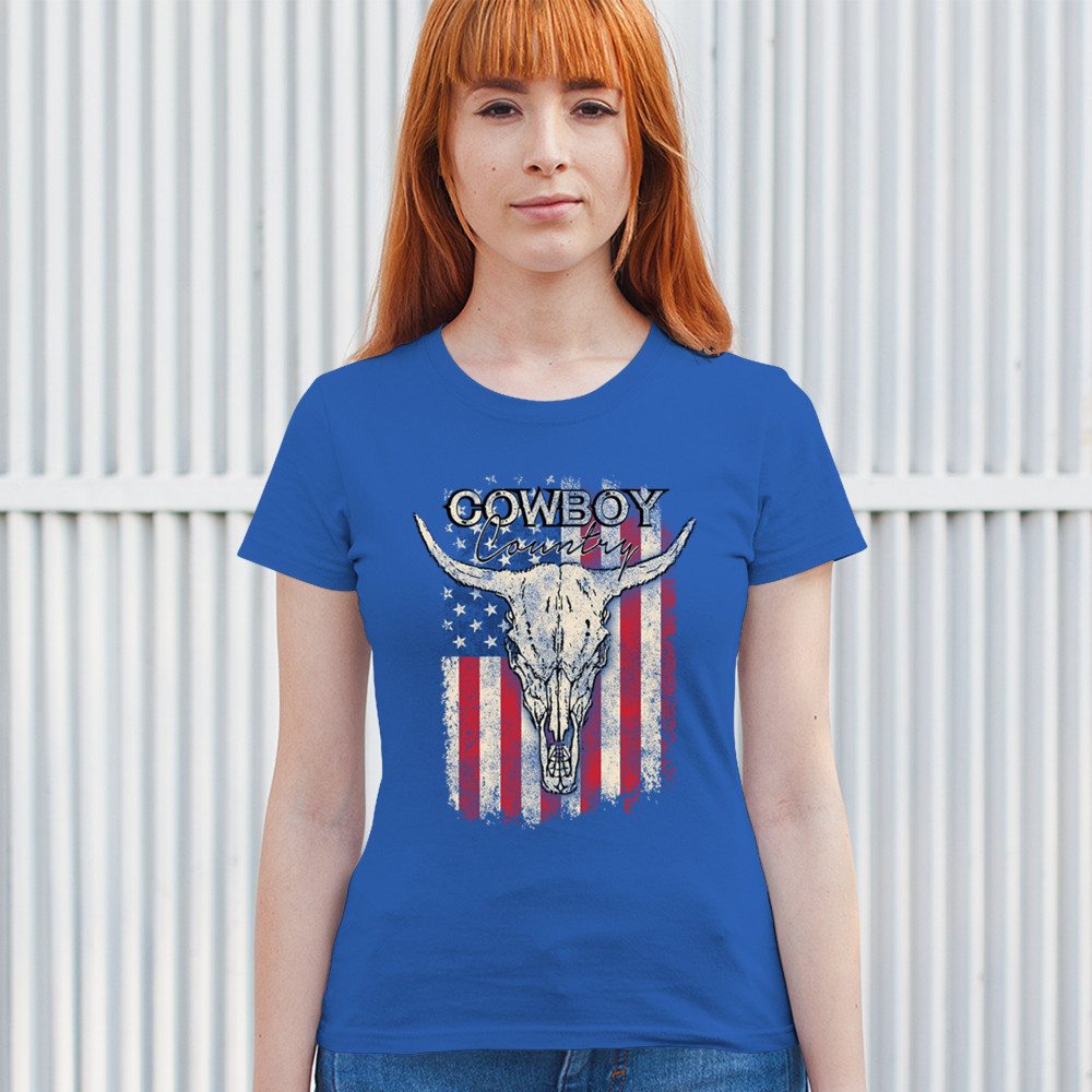 Celebrate western heritage with the Cowboy Country steer skull design, layered over a distressed American flag. This artwork embodies rustic Americana, rodeo style, and desert vibes. Perfect for cowboy décor lovers, ranch life enthusiasts, and those drawn to the wild west’s grit and prairie aesthetic. Wear your frontier spirit proudly.